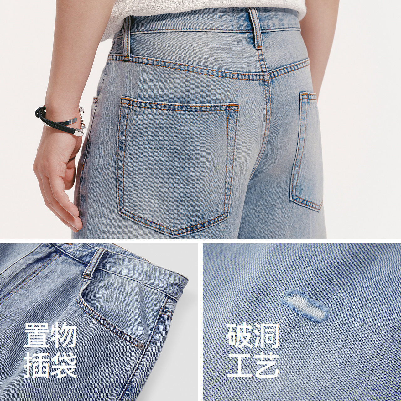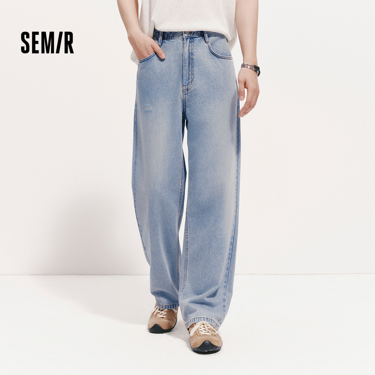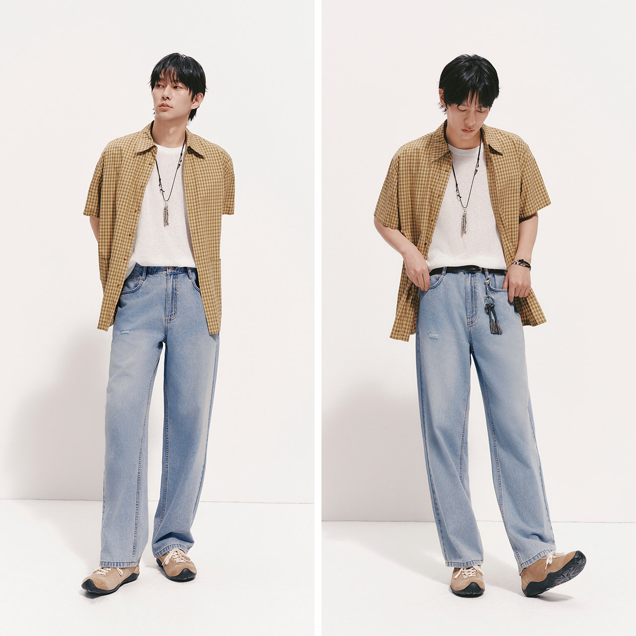 森马牛仔裤 复古水洗长裤 男夏季 2026新款 破洞凉感宽松直筒裤 森柔
