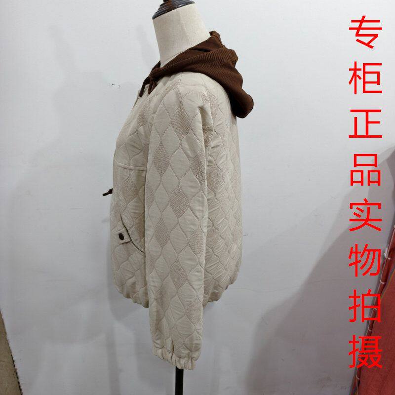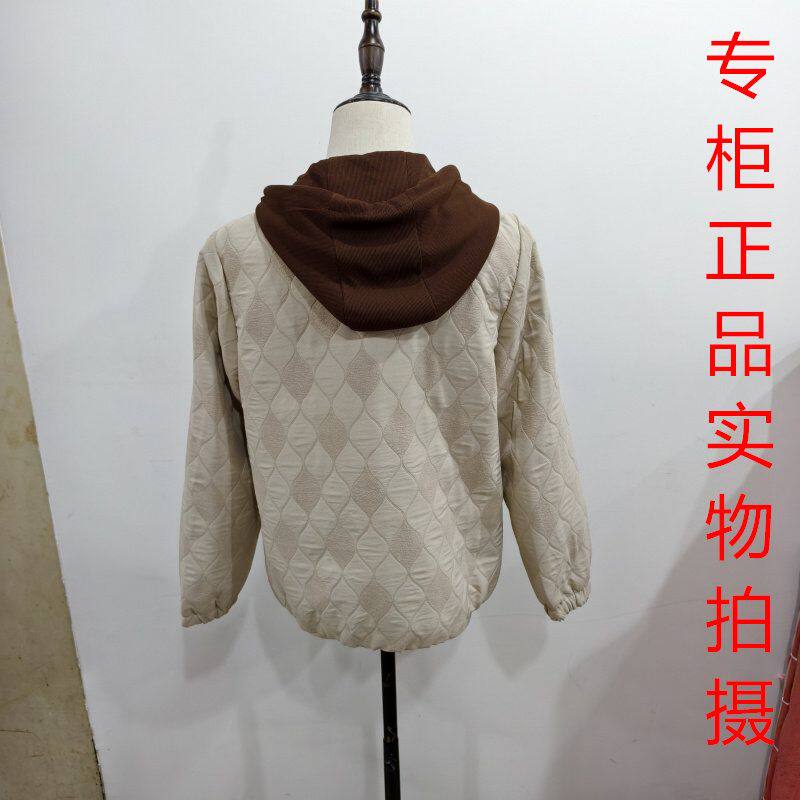 鑫明亮808时尚 宽松百搭减龄夹克上衣2026 菱格纹连帽短外套女春季