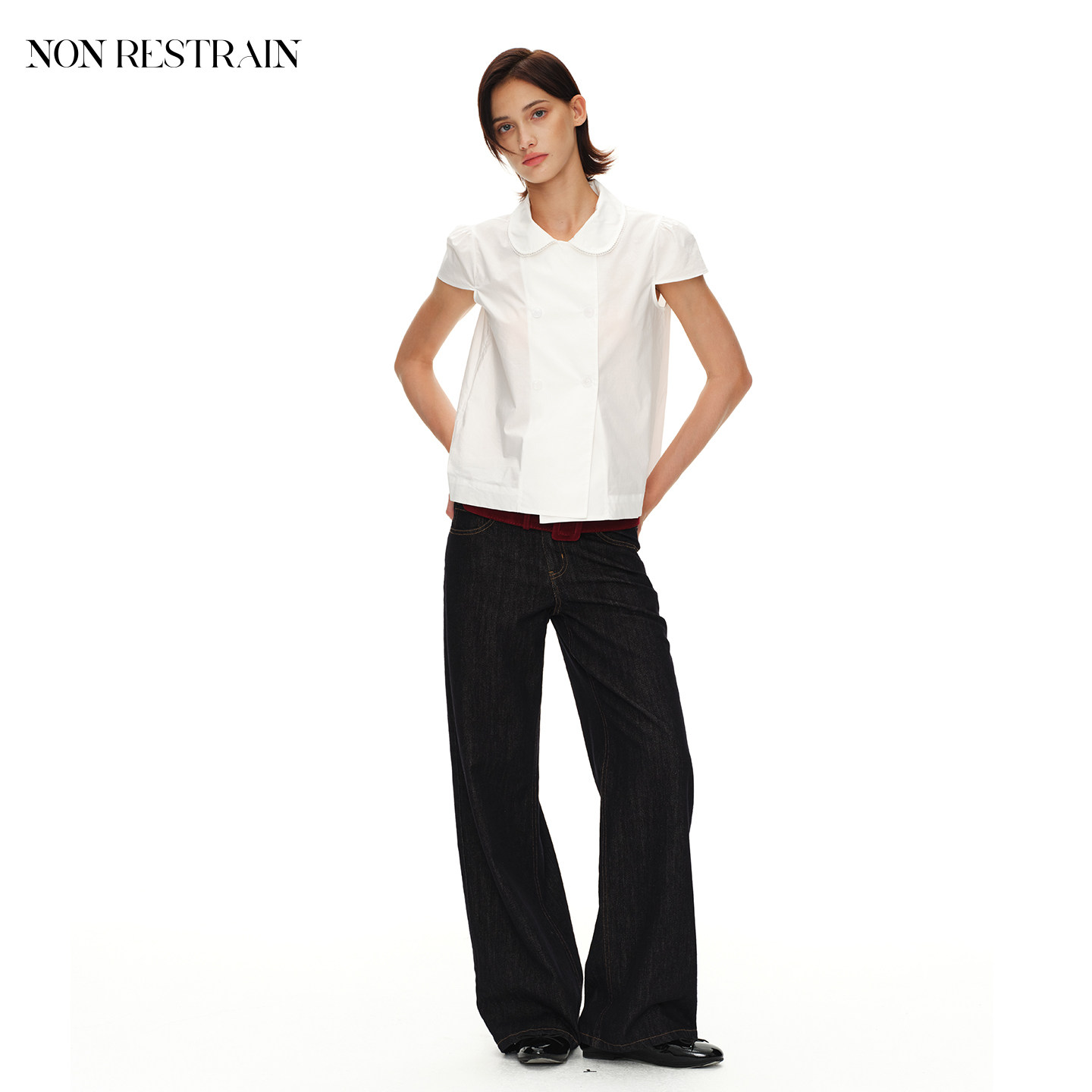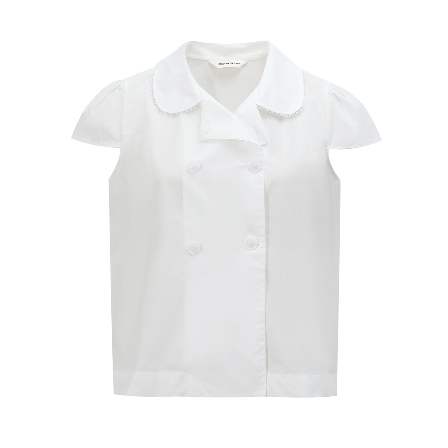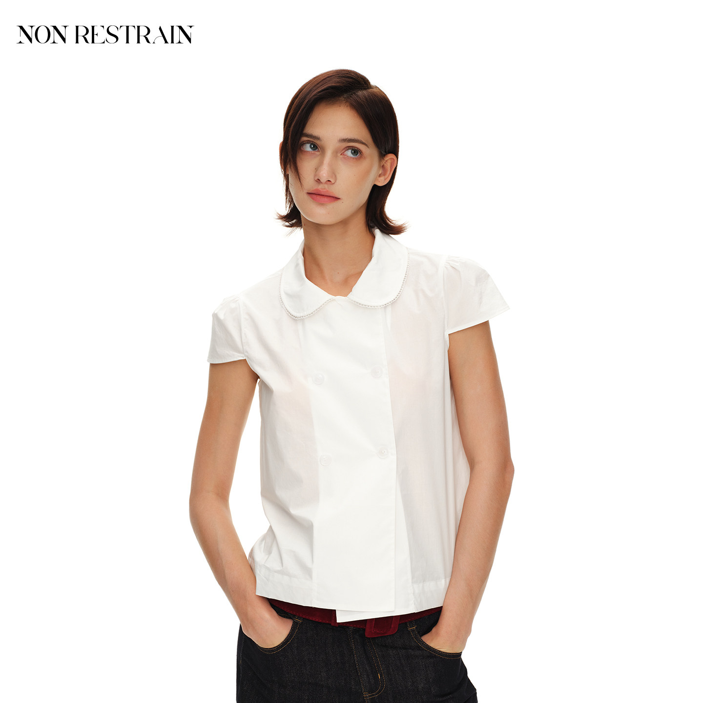 女双排扣泡泡袖 衬衫 白色衬衣 RESTRAIN甜美减龄花边娃娃领短袖 NON