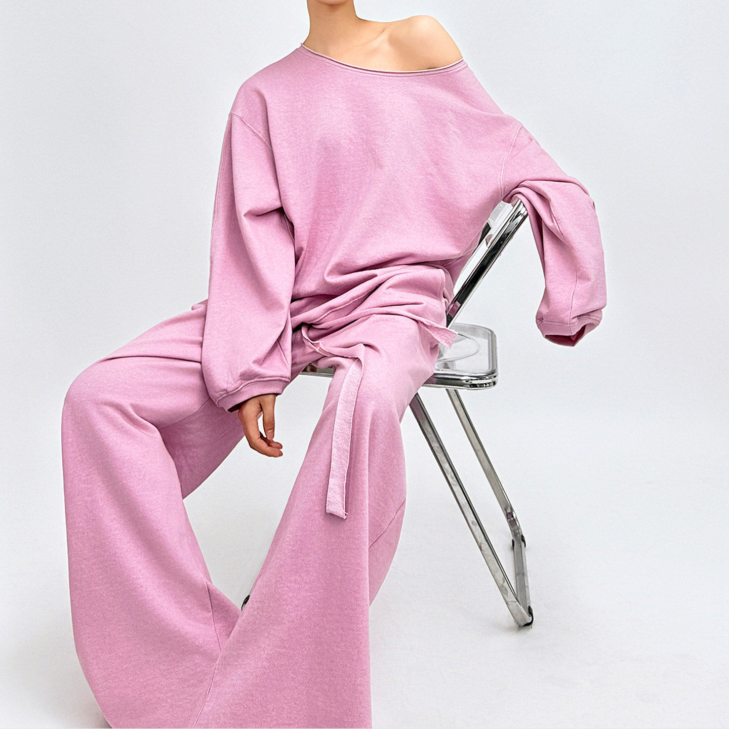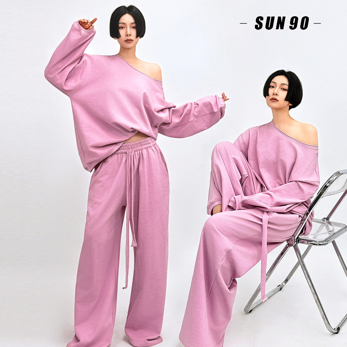 两件套女春夏减龄oversize松弛感套装 SUN90 慵懒风斜肩卫衣阔腿裤