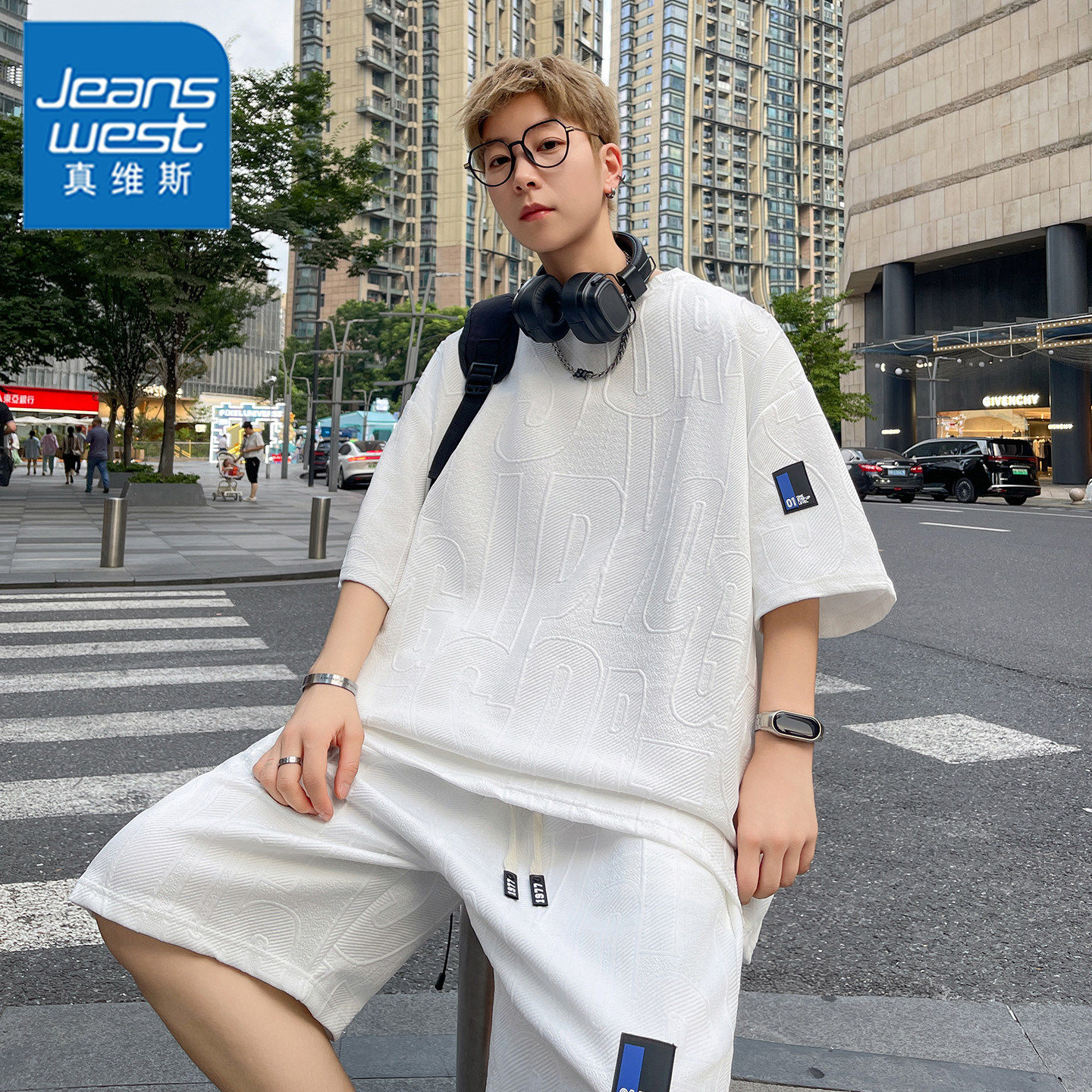休闲套装 加肥加大胖子穿搭套装 男宽松大码 t恤短裤 短袖 真维斯夏季