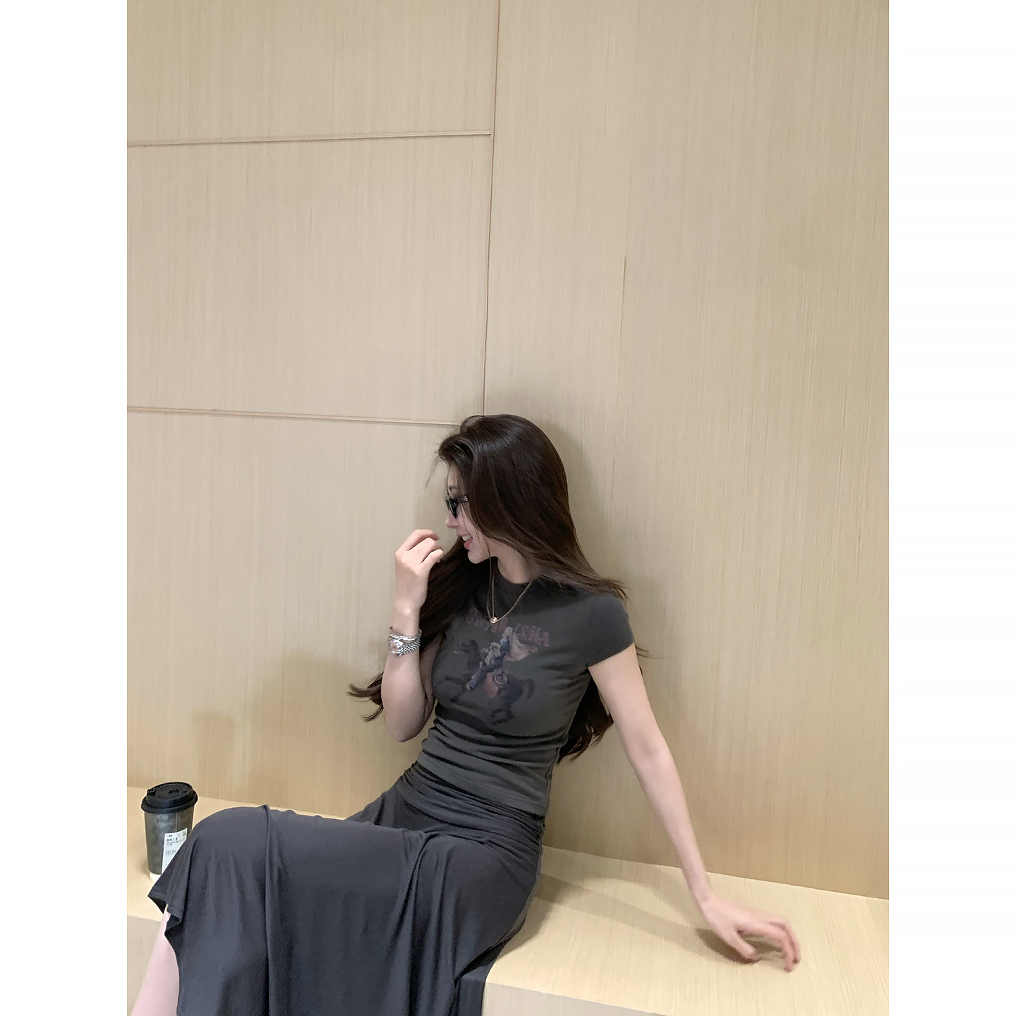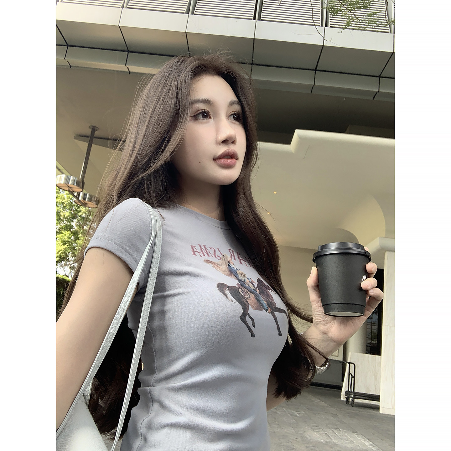 愉悦喻悦 圆领印花正肩短袖 NEW 修身 T恤女夏季 上衣 3.26