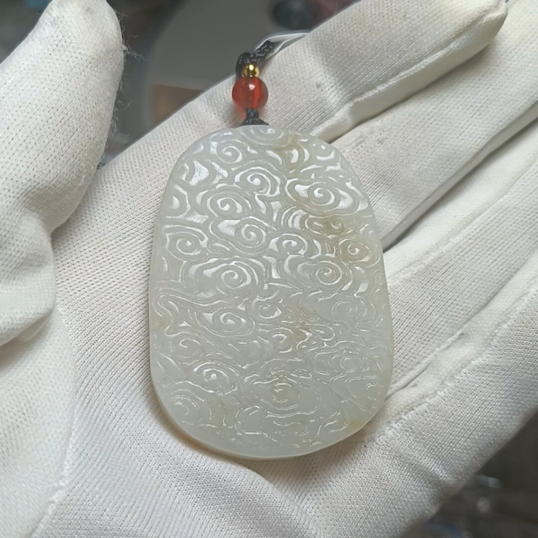 天然和田玉厚手镯心龙牌吊坠玉坠挂件 带鉴定证书保真品礼物n96