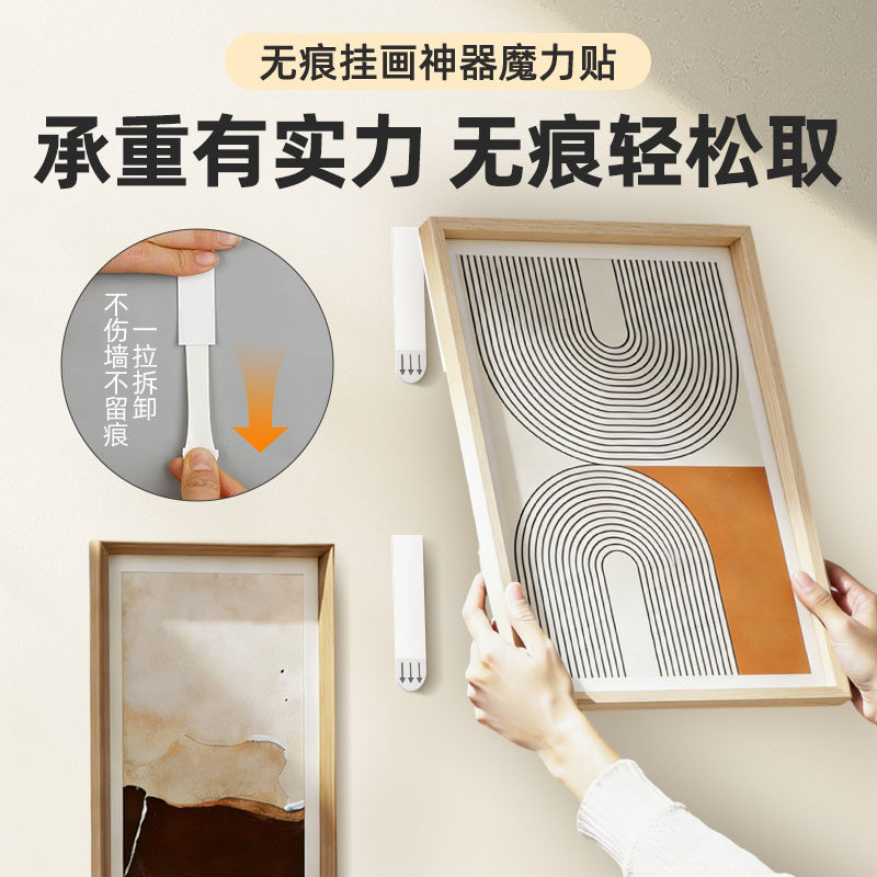 挂画神器免打孔乳胶漆无痕双面胶魔术贴强力粘画框相框挂钩固定贴