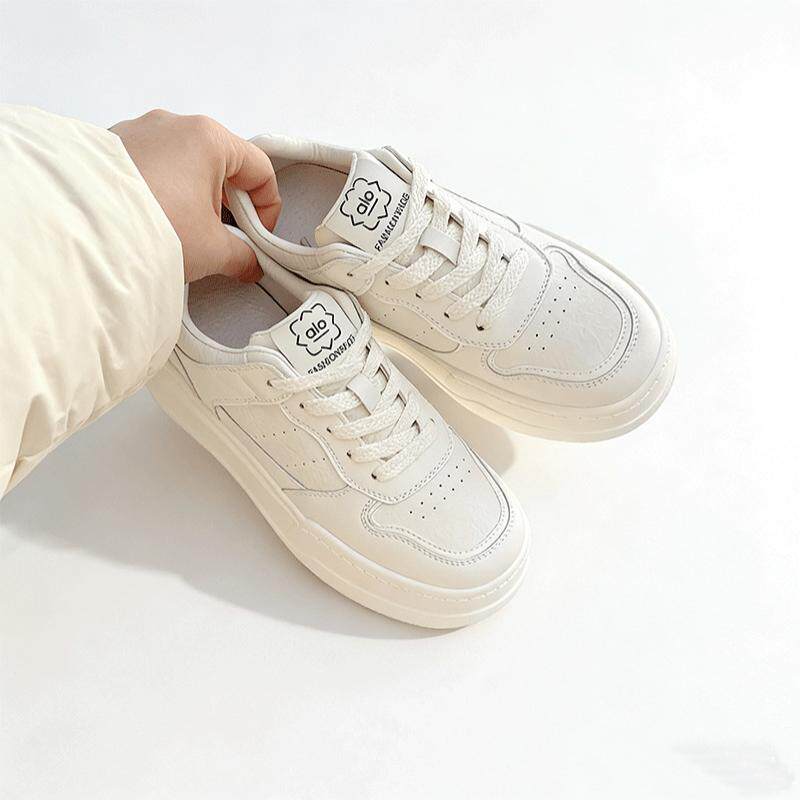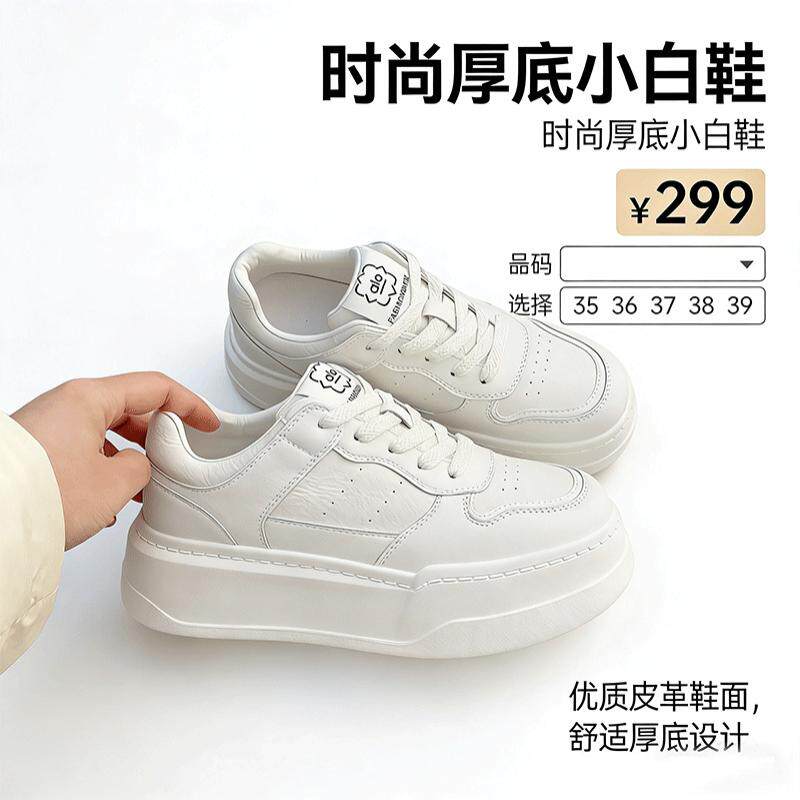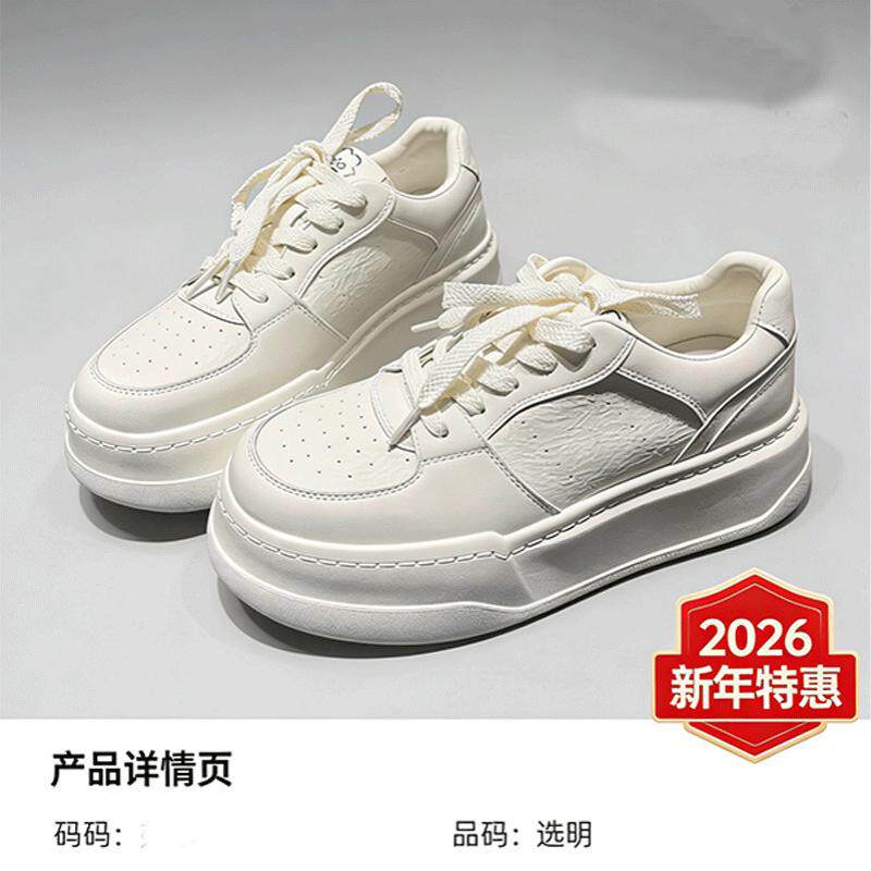 女2025秋季 圆头系带轻便休闲运动女鞋 新款 板鞋 韩版 29号厚底小白鞋