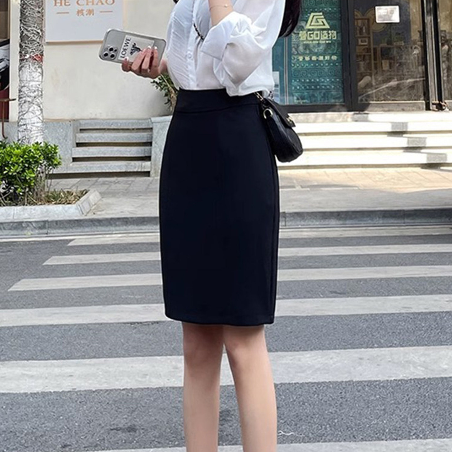OL风职业半身裙女大码 一步西裙工作裙女后开叉遮肉百搭包臀裙胖mm