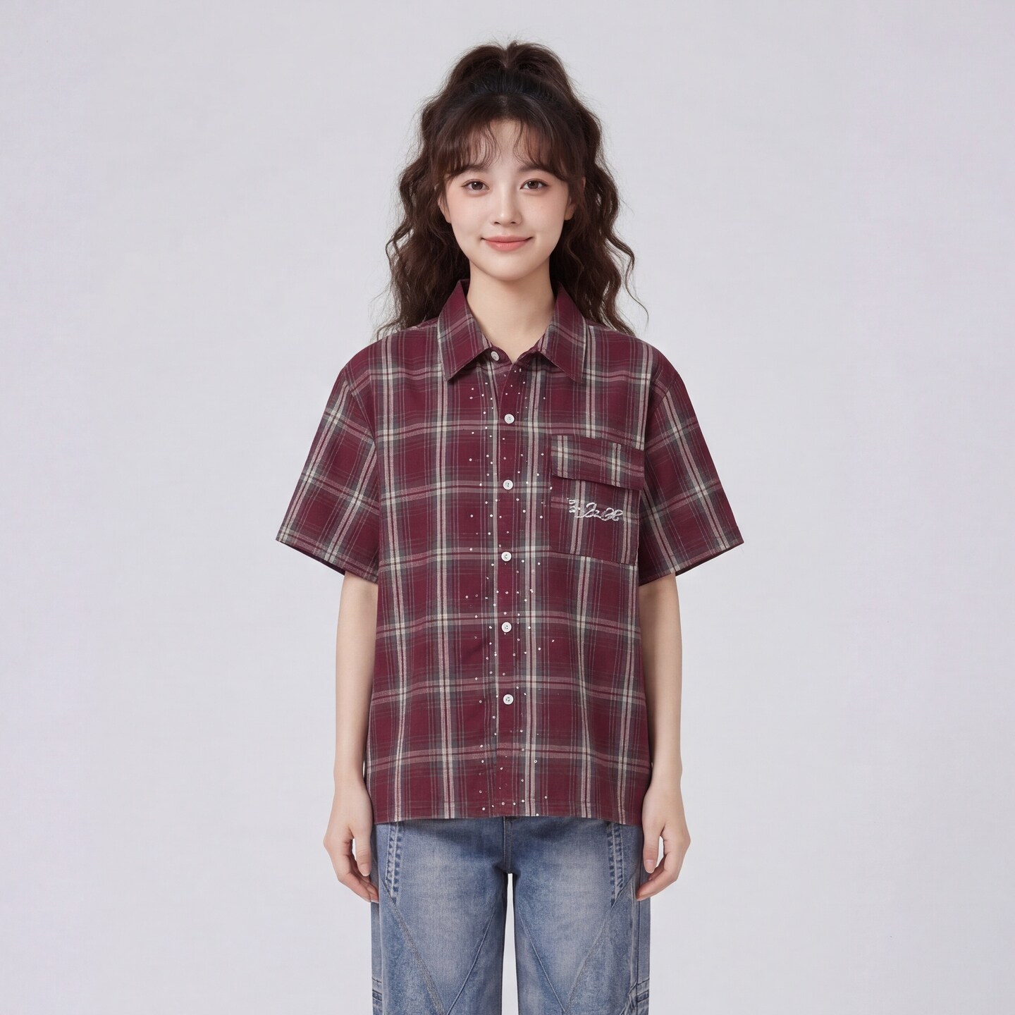 embroidered Pocket casual short shirt From sleeved Mars