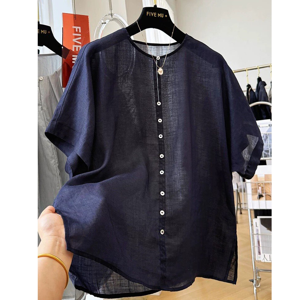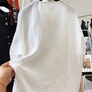 小衫 胖mm特大码 女夏轻薄透视宽松法式 衬衫 衬衣 300斤防晒棉麻短袖