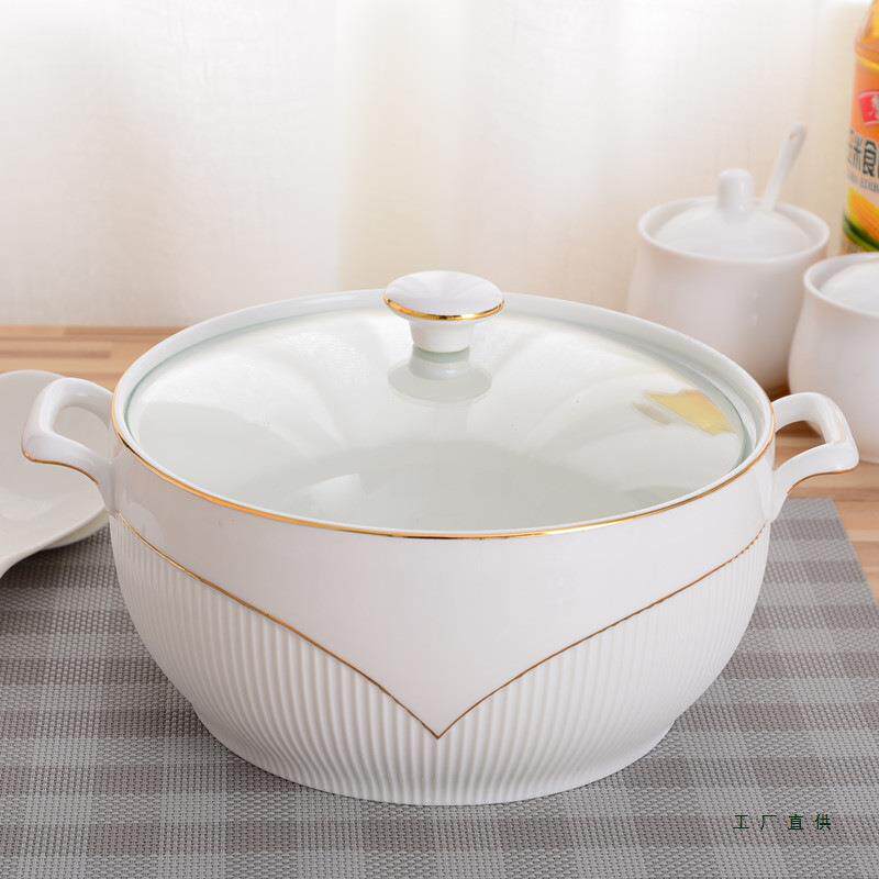 家用耳窝带盖陶瓷汤饭创意炖盅纯白大号容量双汤碗汤盆微F5M55MJH