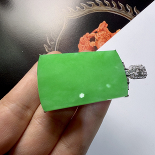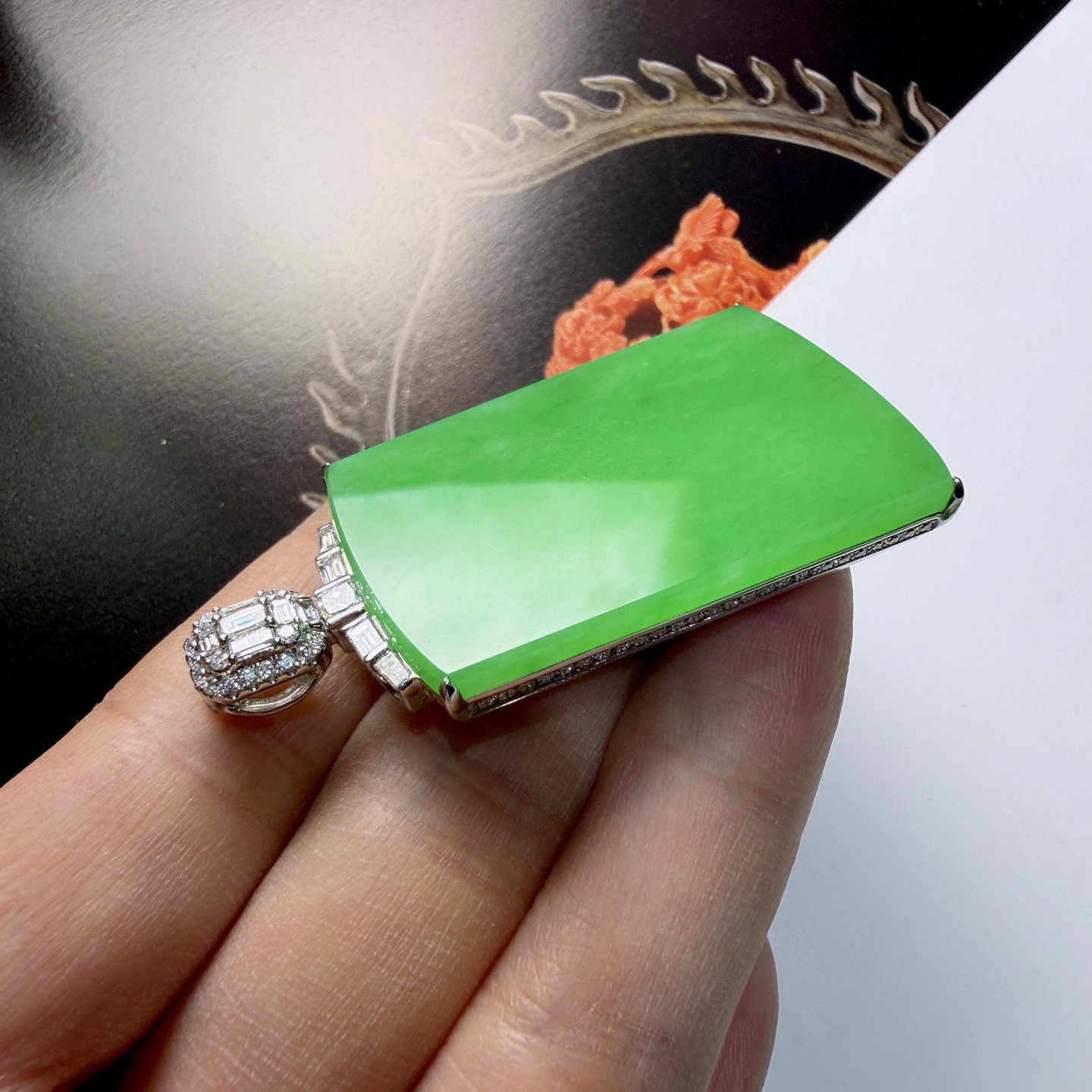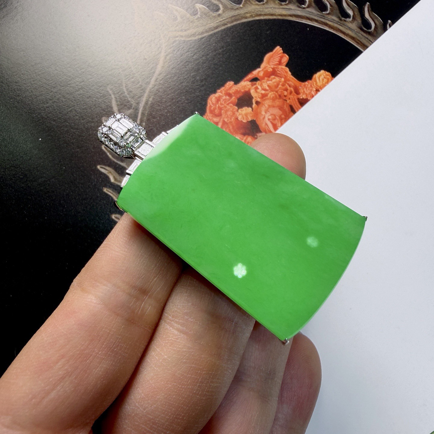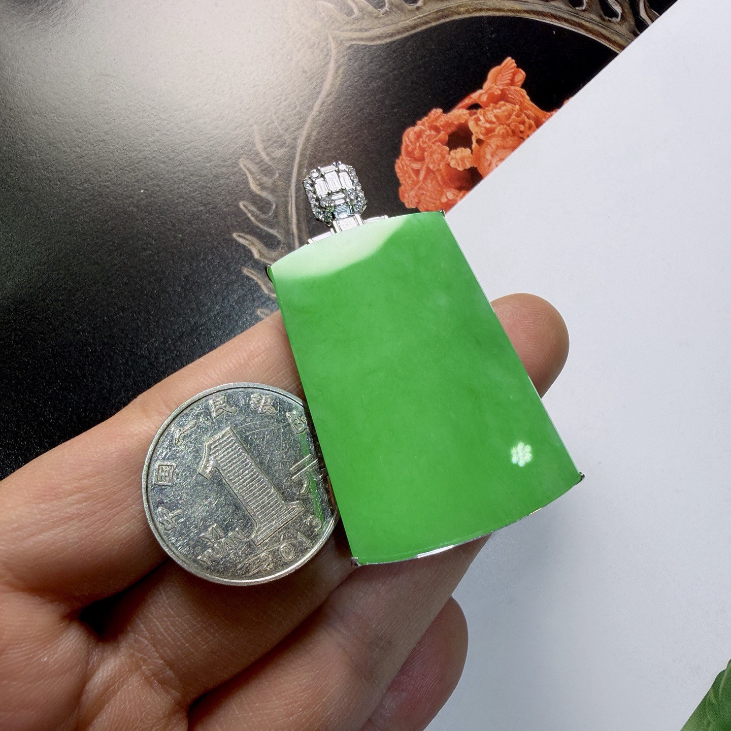 2026天然缅甸翡翠A货18k金镶嵌冰种阳绿无事牌吊坠0316M111