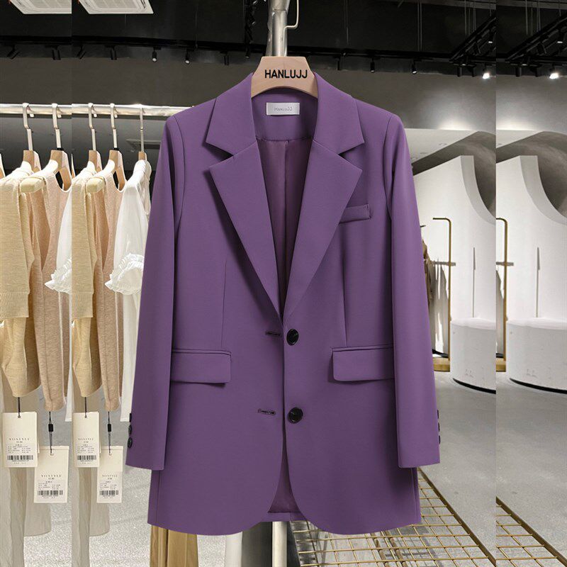 紫色西装 套装 外套女2024春胖mm韩版 显瘦垂感阔腿裤 两件套 修身 大码