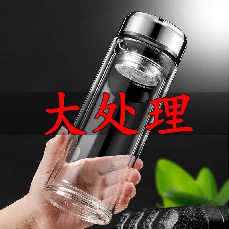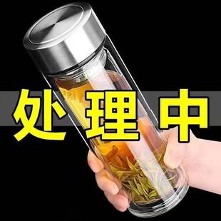 家用水杯双层大容量玻璃杯男士 高档便携透明广告杯保温泡茶杯子