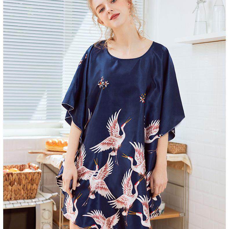 家居服DP1335 睡裙女夏大码 耀婷冰丝丝绸睡衣女士夏季 蝙蝠袖