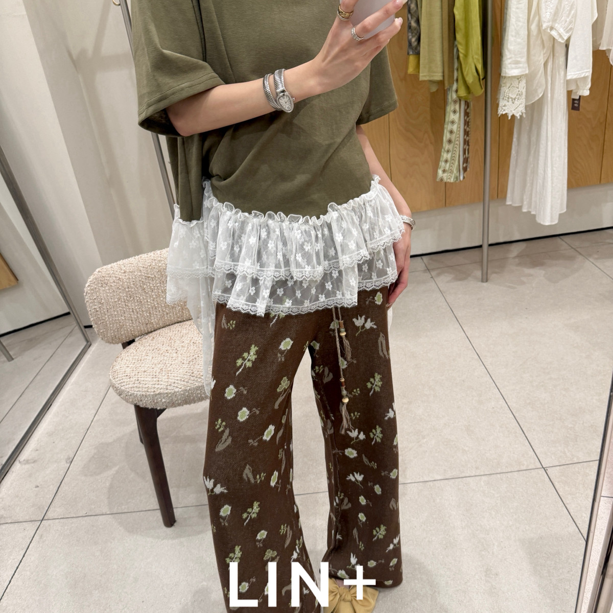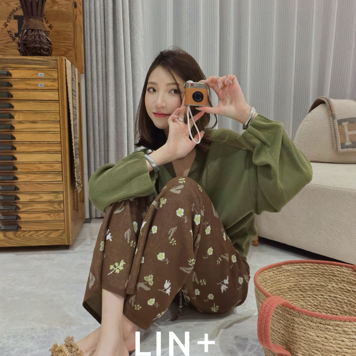 LIN ZL306 夏上新~莱赛尔亚麻清爽老钱复古提花抽绳直筒休闲裤