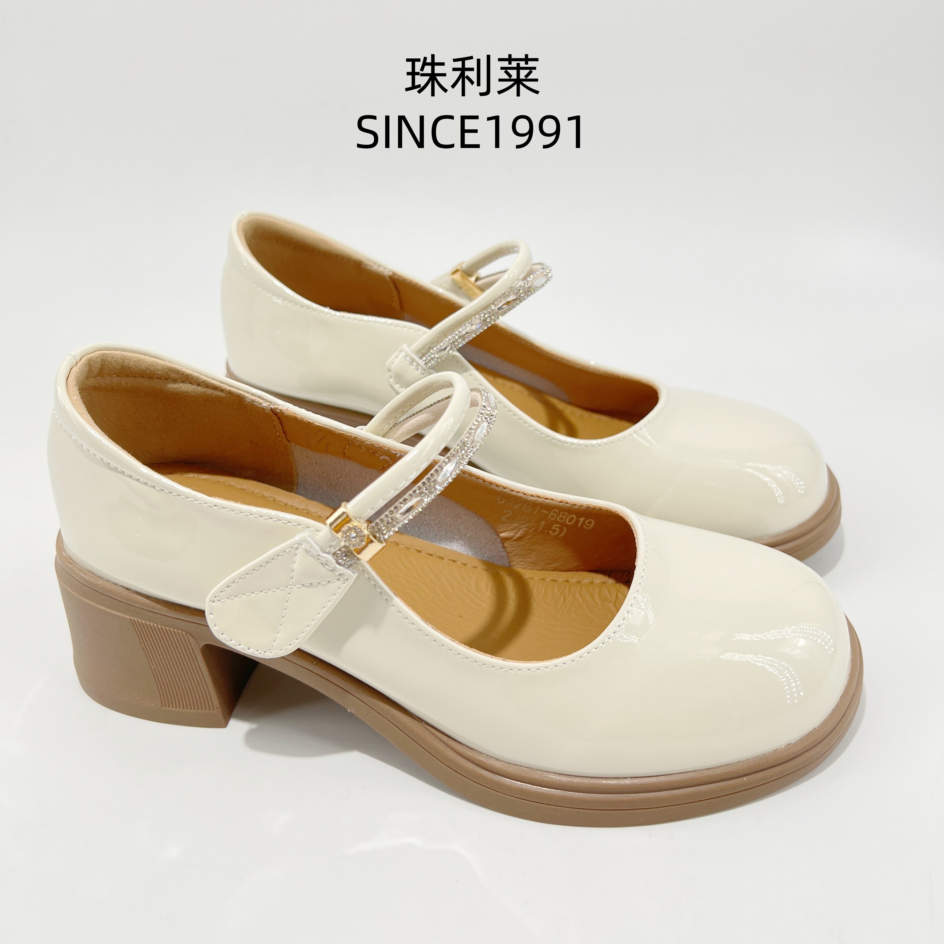 女水钻一字带气质厚底单鞋 珠利莱2026春季 漆皮粗跟玛丽珍鞋