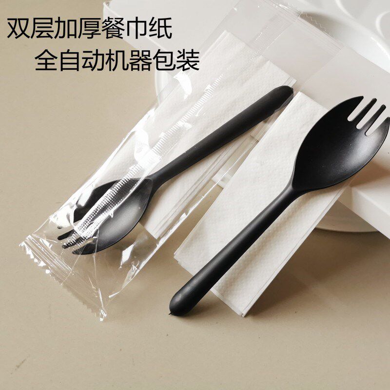 Disposable Forks Tableware Dessert Spoon Black Plastic