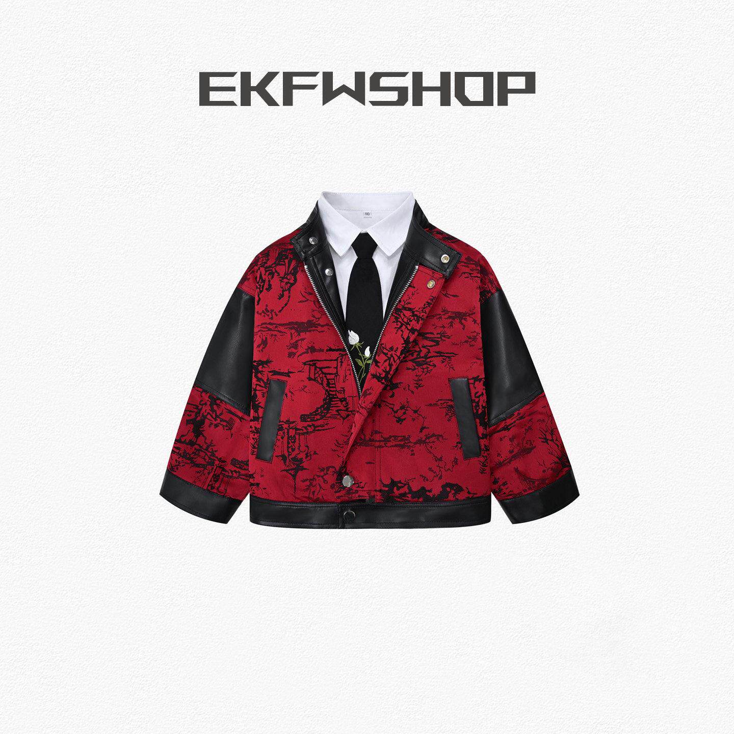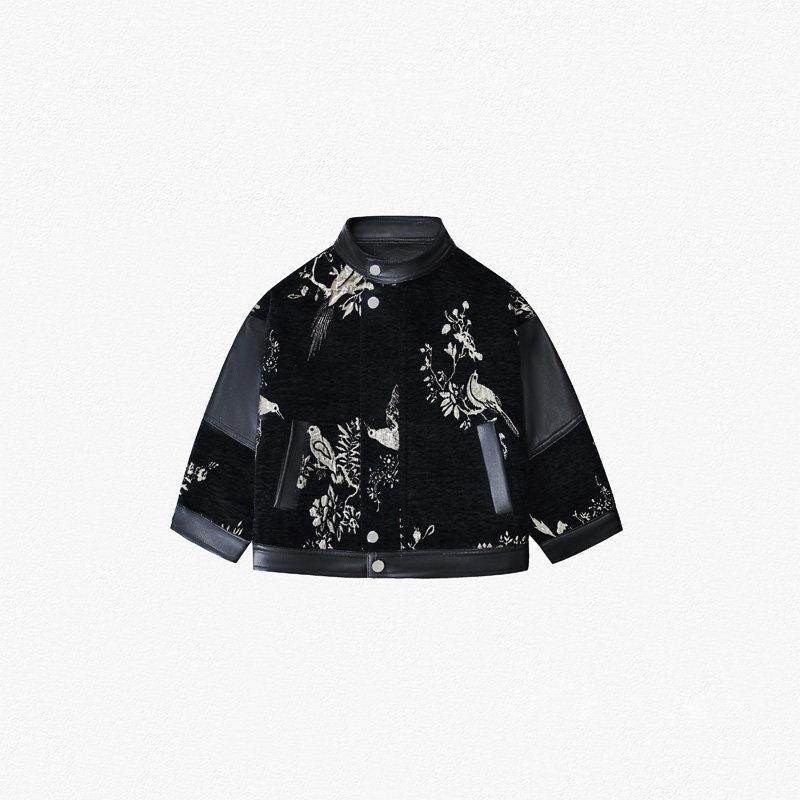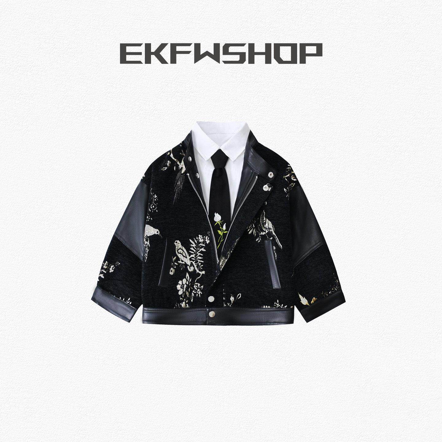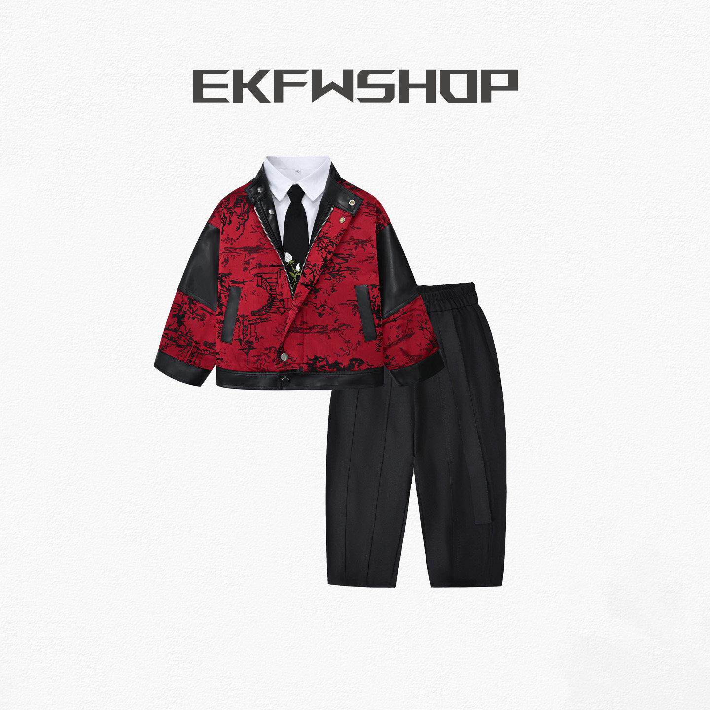 男童秋冬新款 中国风男宝宝痞帅绣花夹克立领外套儿童礼服 皮衣套装