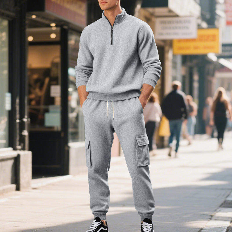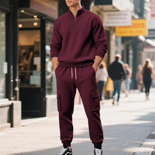 亚马逊美式 套装 复古男休闲加绒保暖拉链男式 长裤 工装 跨境秋冬男装