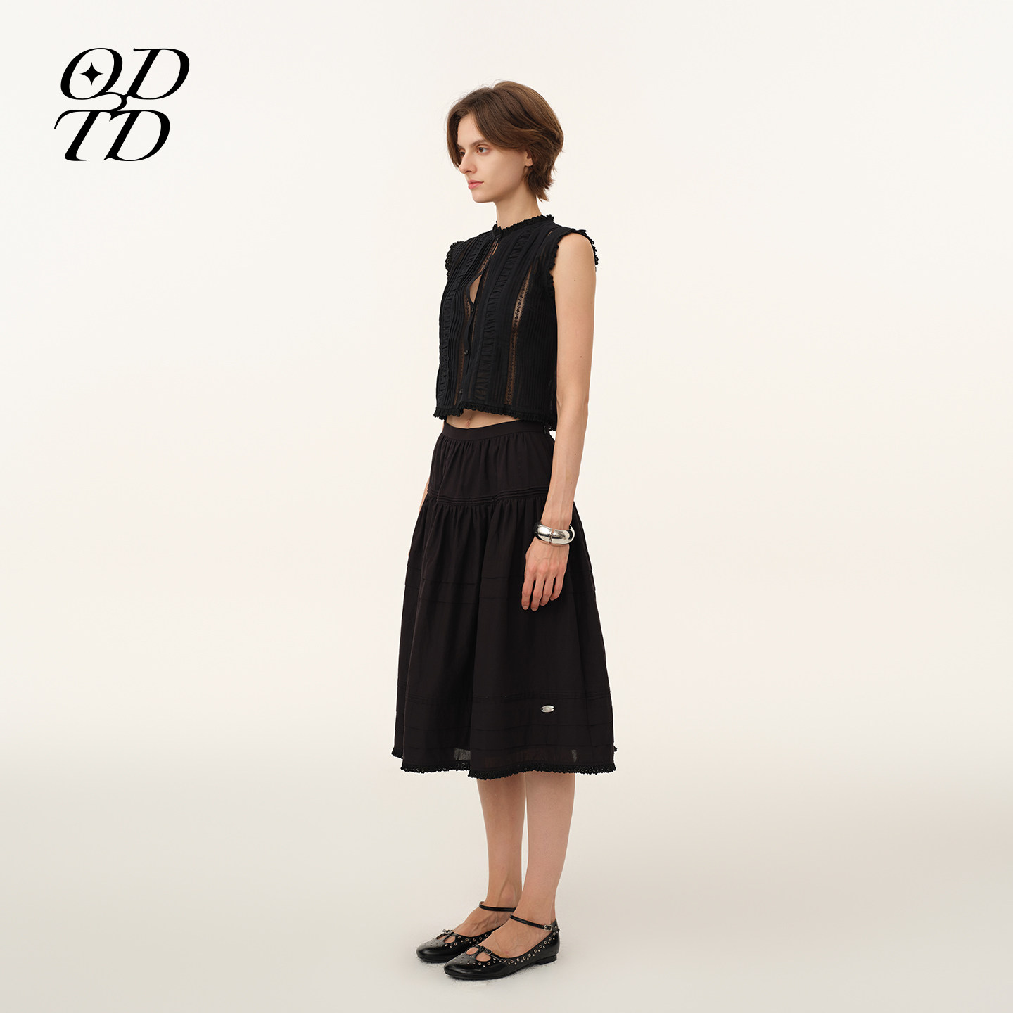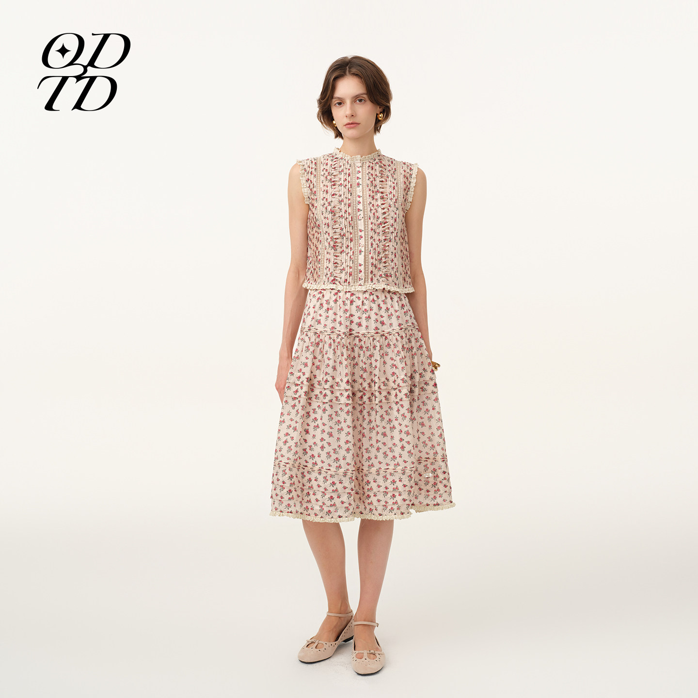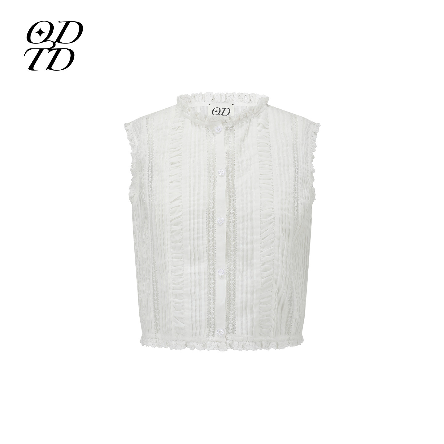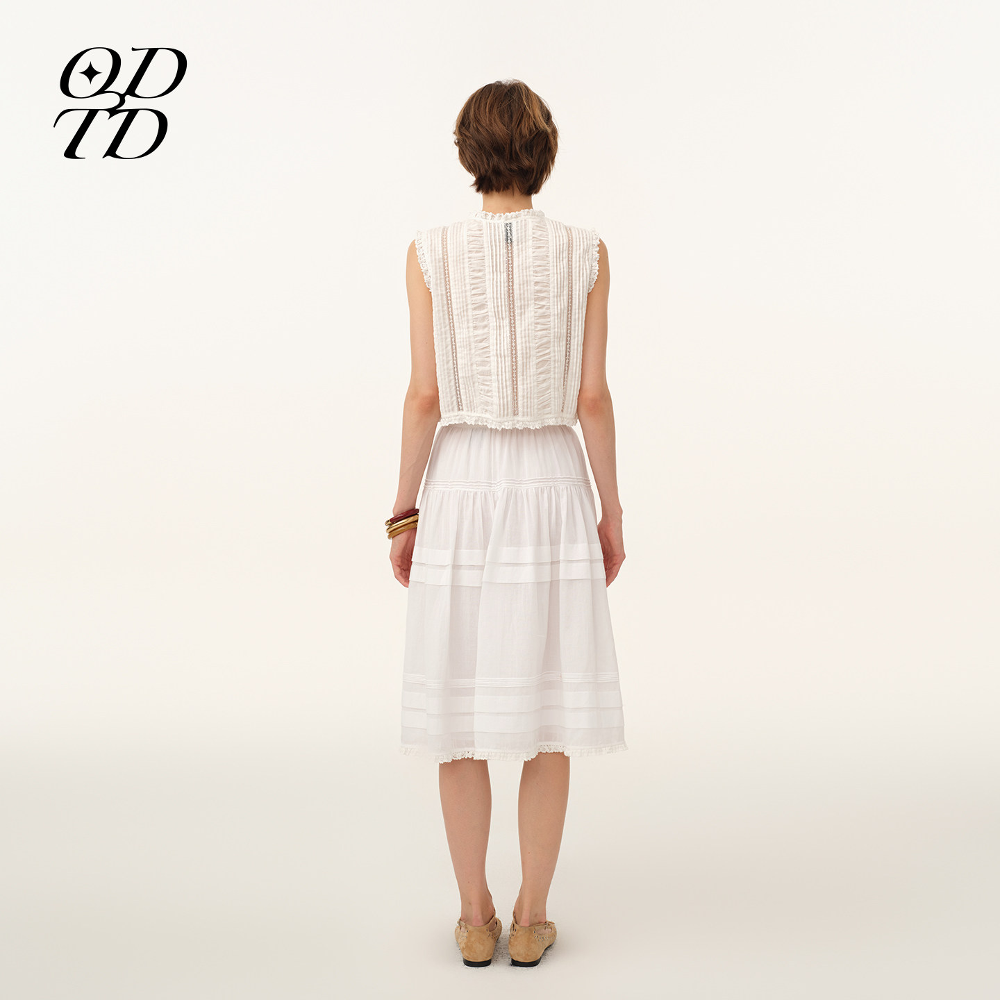 塔克蕾丝花边无袖 ODTD26春夏新款 宽松上衣度假套装 设计师女装