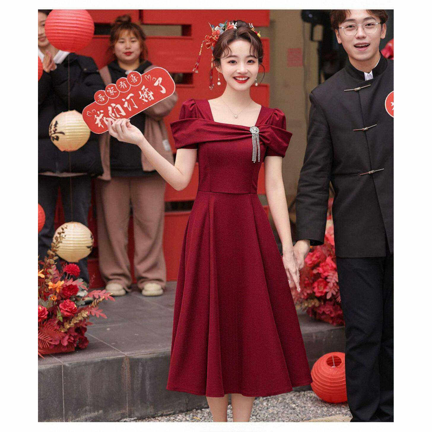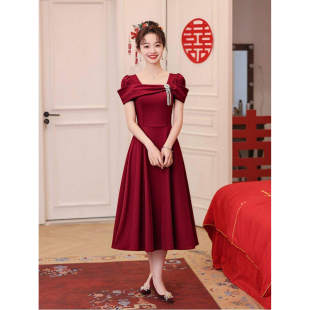 显瘦 红色回门服订婚礼服裙结婚当天新娘便装 敬酒服女2026新款 夏季