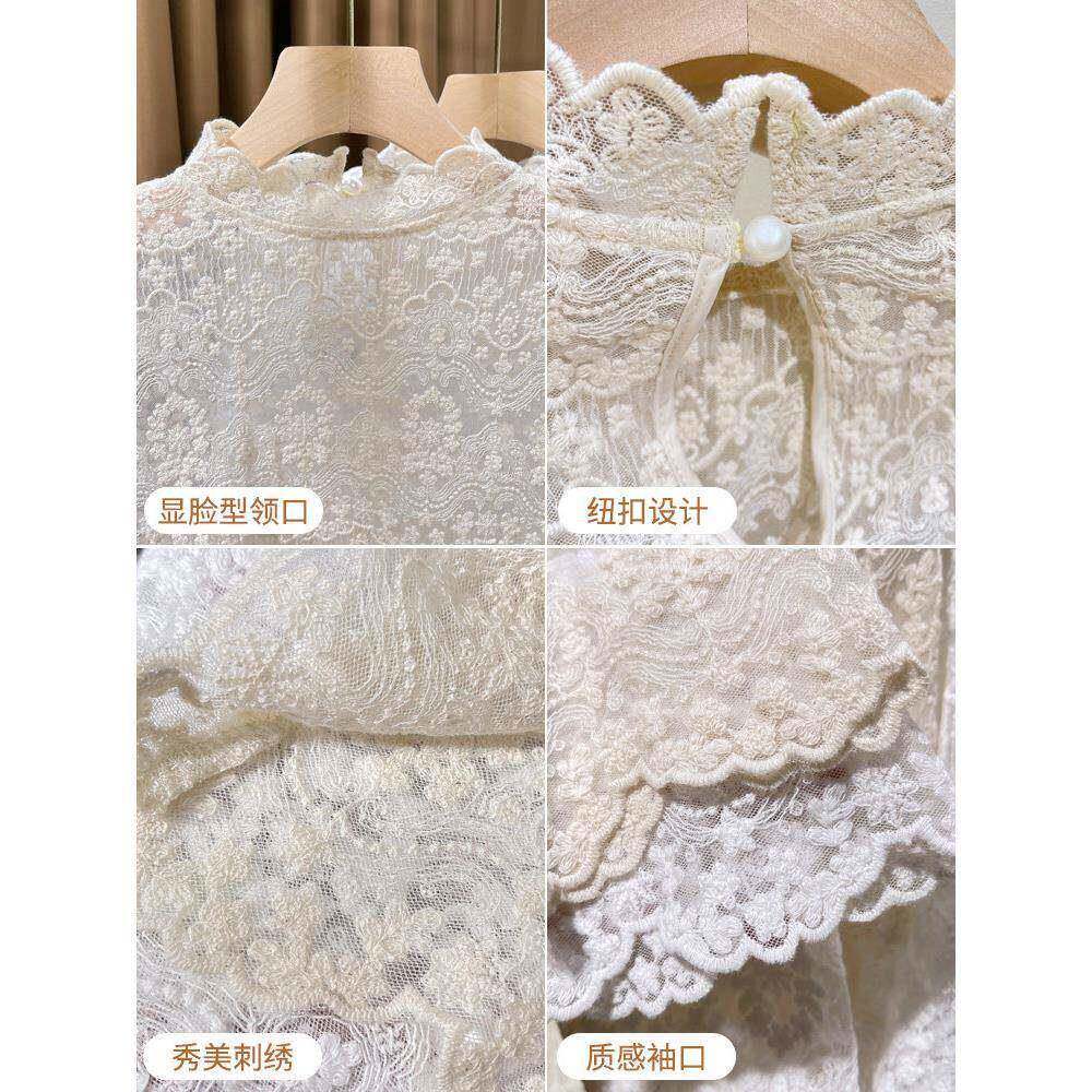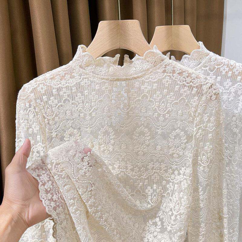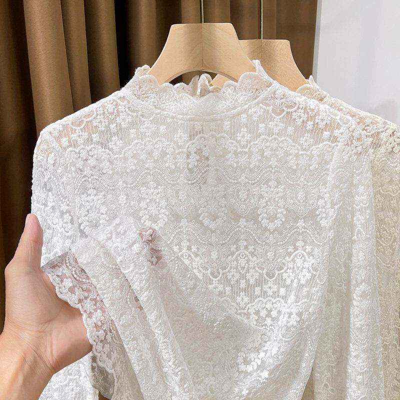 春夏半高领蕾丝毛衣与小衬衫 剪裁0325z 妇女和新刺绣薄网底衬衫
