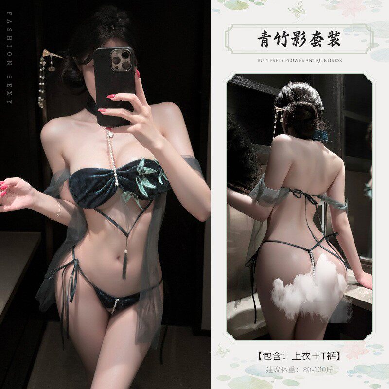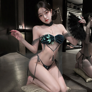 挂脖网纱肚兜古风旗袍制服性感三点套装 原创约会战袍角色扮演制服