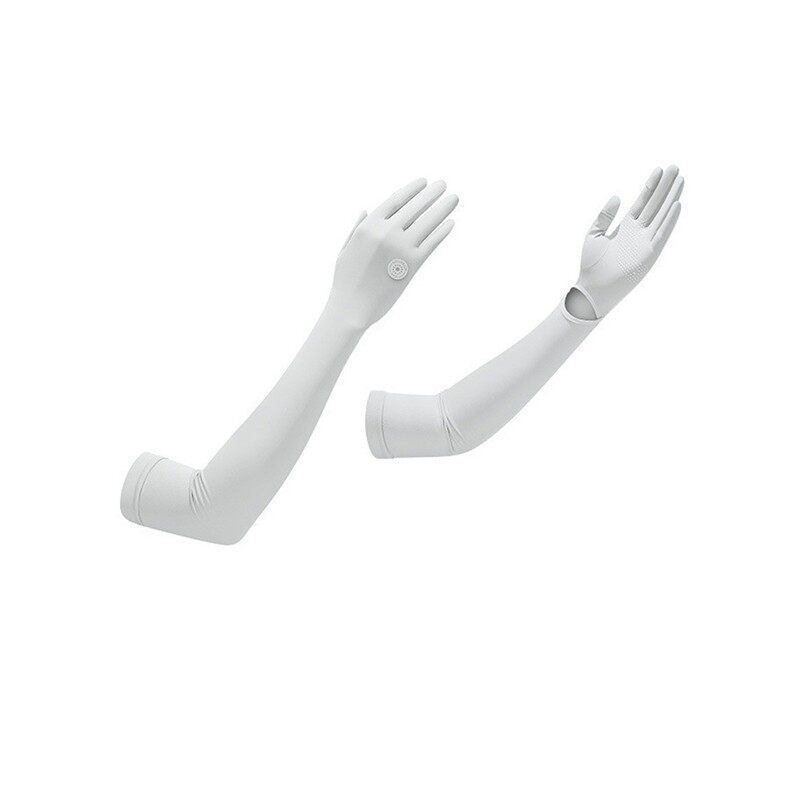 防紫外线透气骑行防滑触屏女士露指加长 夏季 冰丝防晒手套女款 薄款