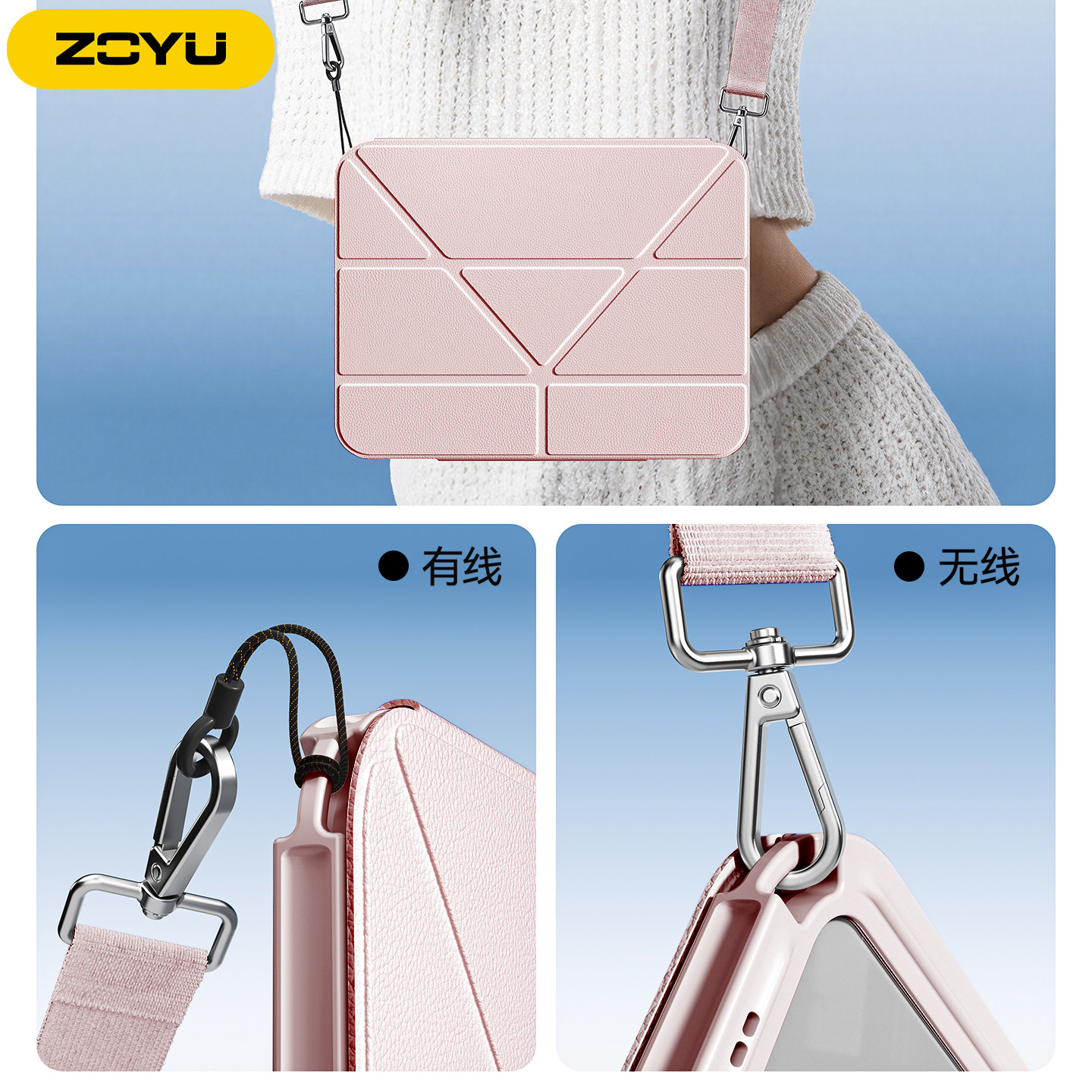 iPadair8保护套斜挎挂绳air7滑轨抽拉拆分654透明苹果ipadpro保护壳横竖3 肩带防摔弯 y折支架11寸平板可背式