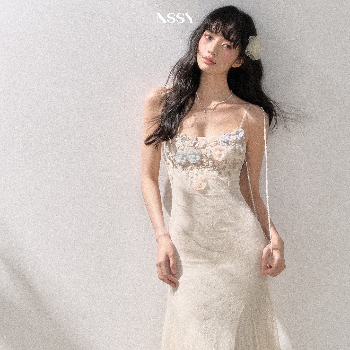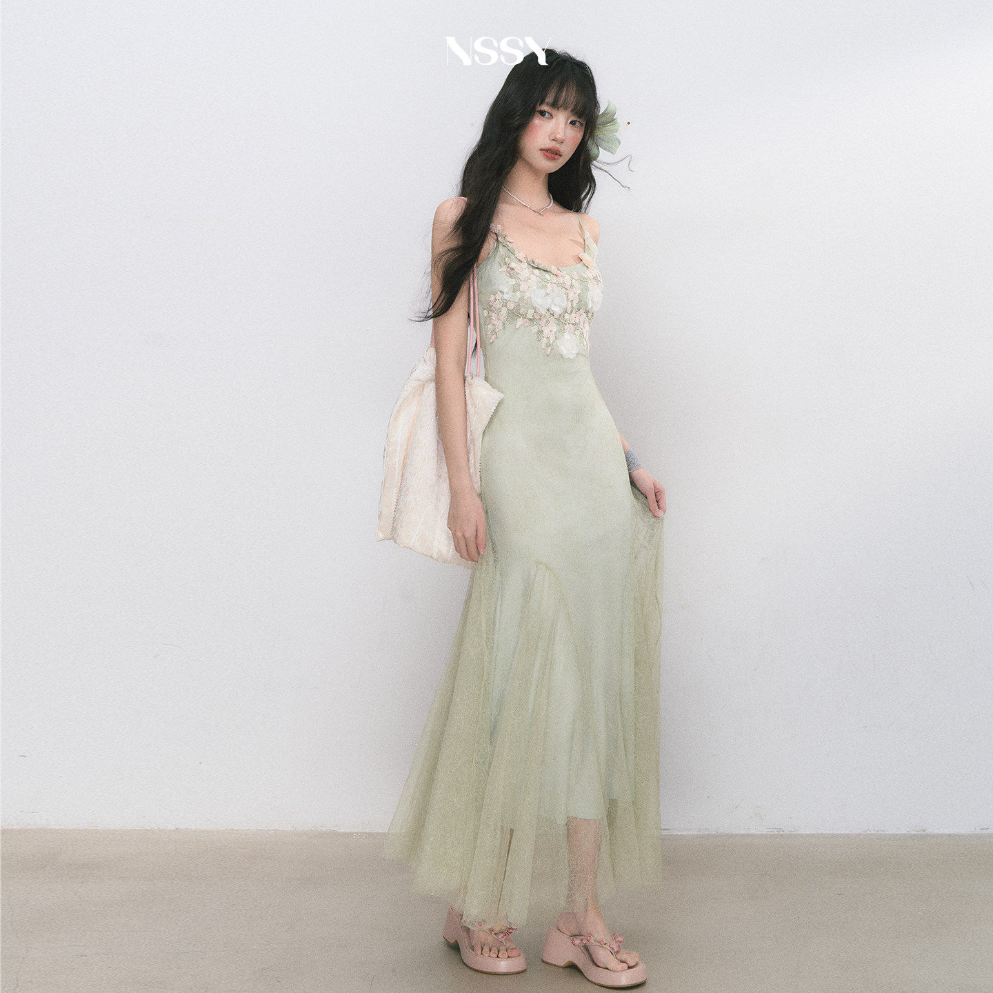 溺水三鱼NSSY海边度假绿色洋装 宴会生日长裙 女夏仙气千金修身