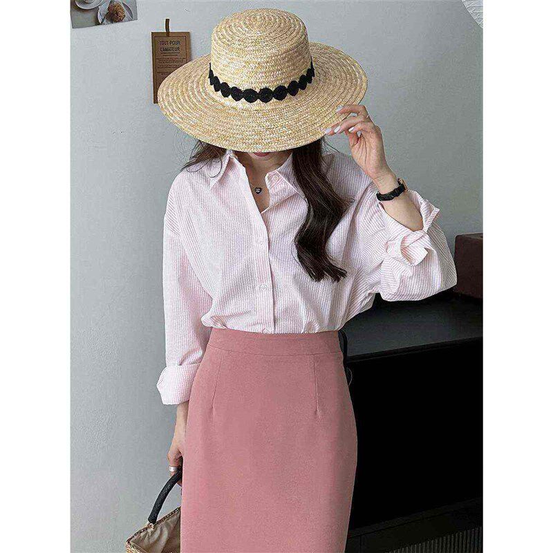 Long sleeved Shirt Orange Striped Simple Womens Pur Zhichun