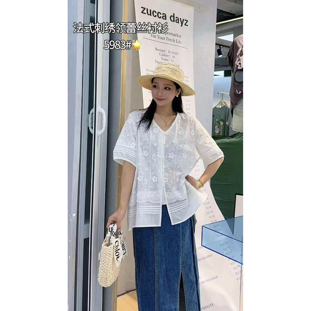 显瘦上衣衬衫 女装 蕾丝短袖 T恤半袖 5983妃儿红2026夏新款 小衫 大码