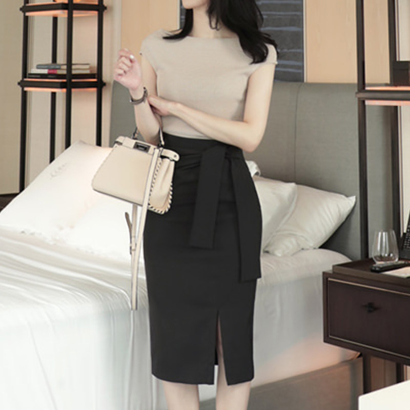 裙子ol职业半裙 开叉高腰西装 黑色包臀裙半身裙女夏装 一步裙中长款