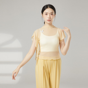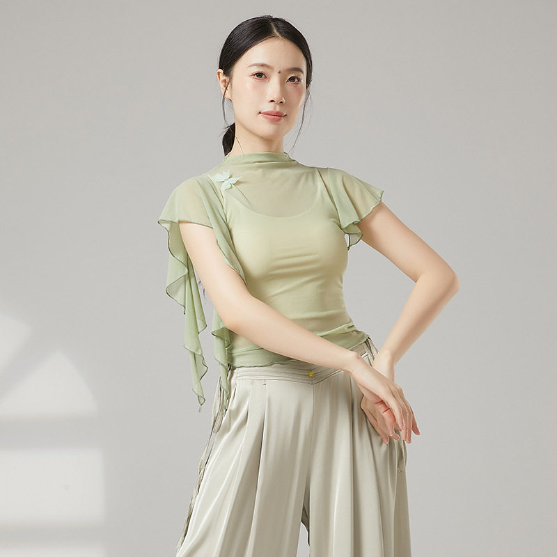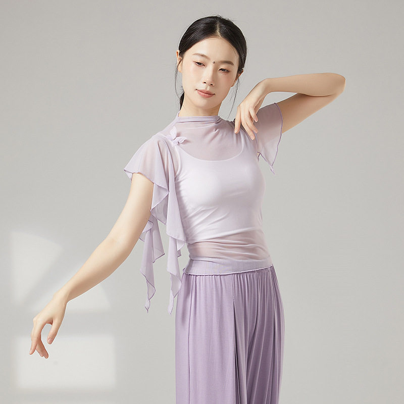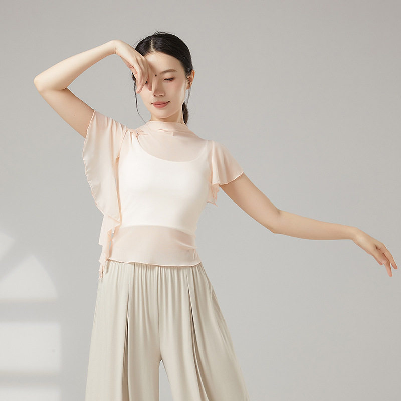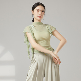 上衣女芭蕾舞练功服现代舞罩衫 古典舞高领纱衣身韵舞蹈服修身 短袖