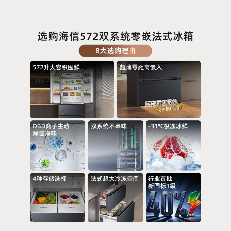海信572L冰箱法式 首发 多门双系统超薄零嵌入大容量 新品