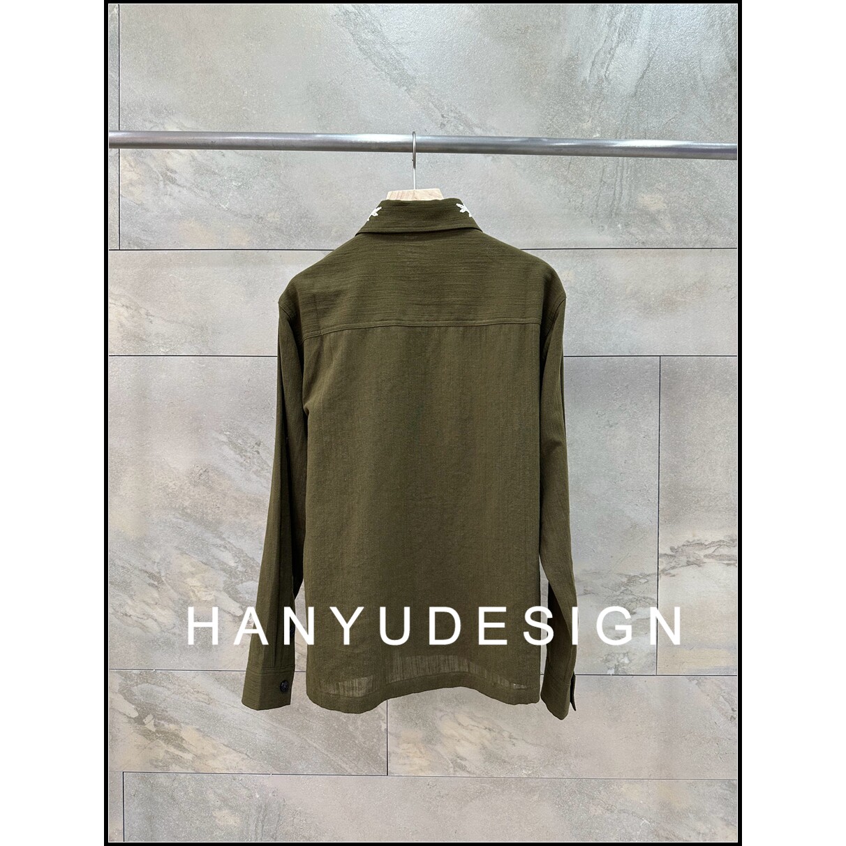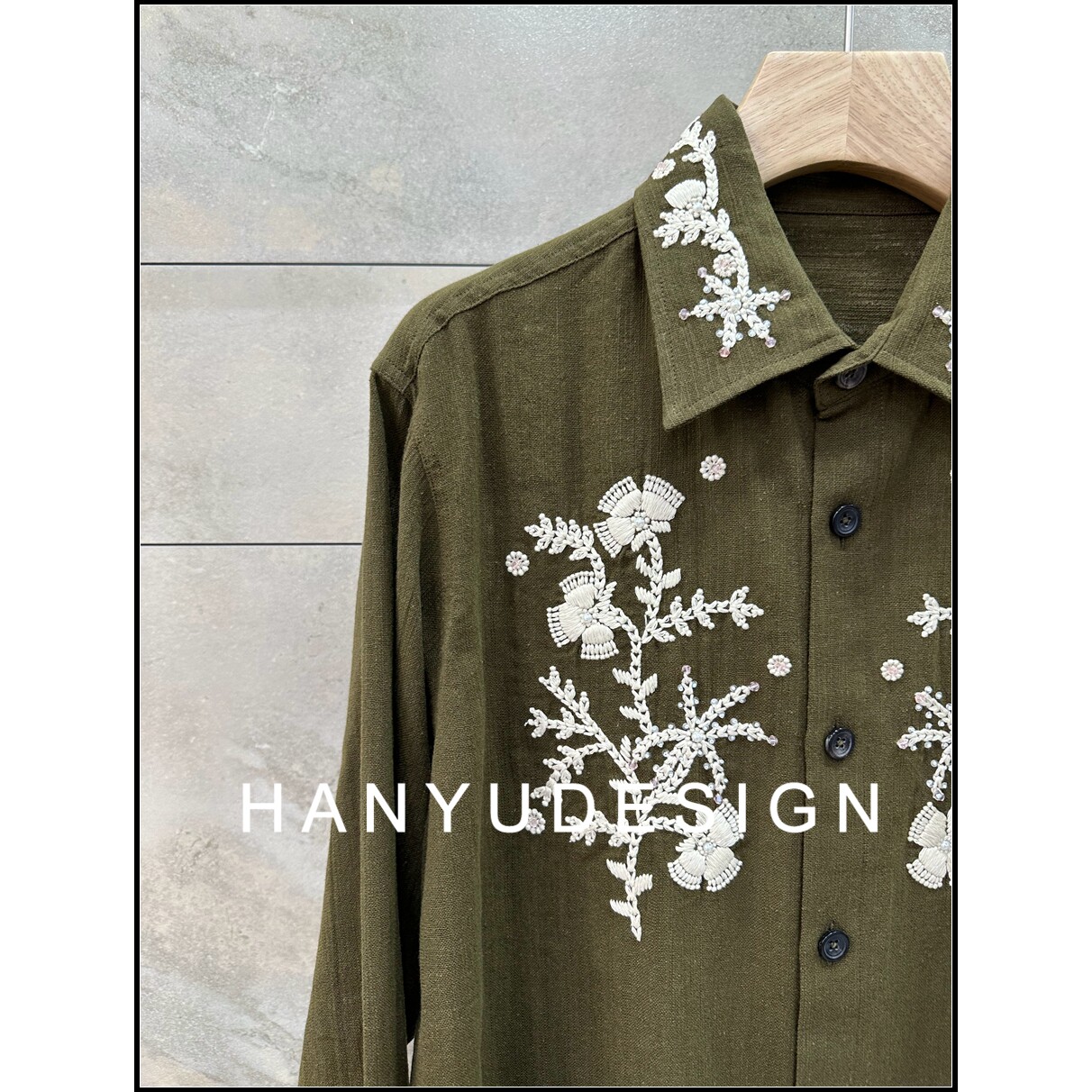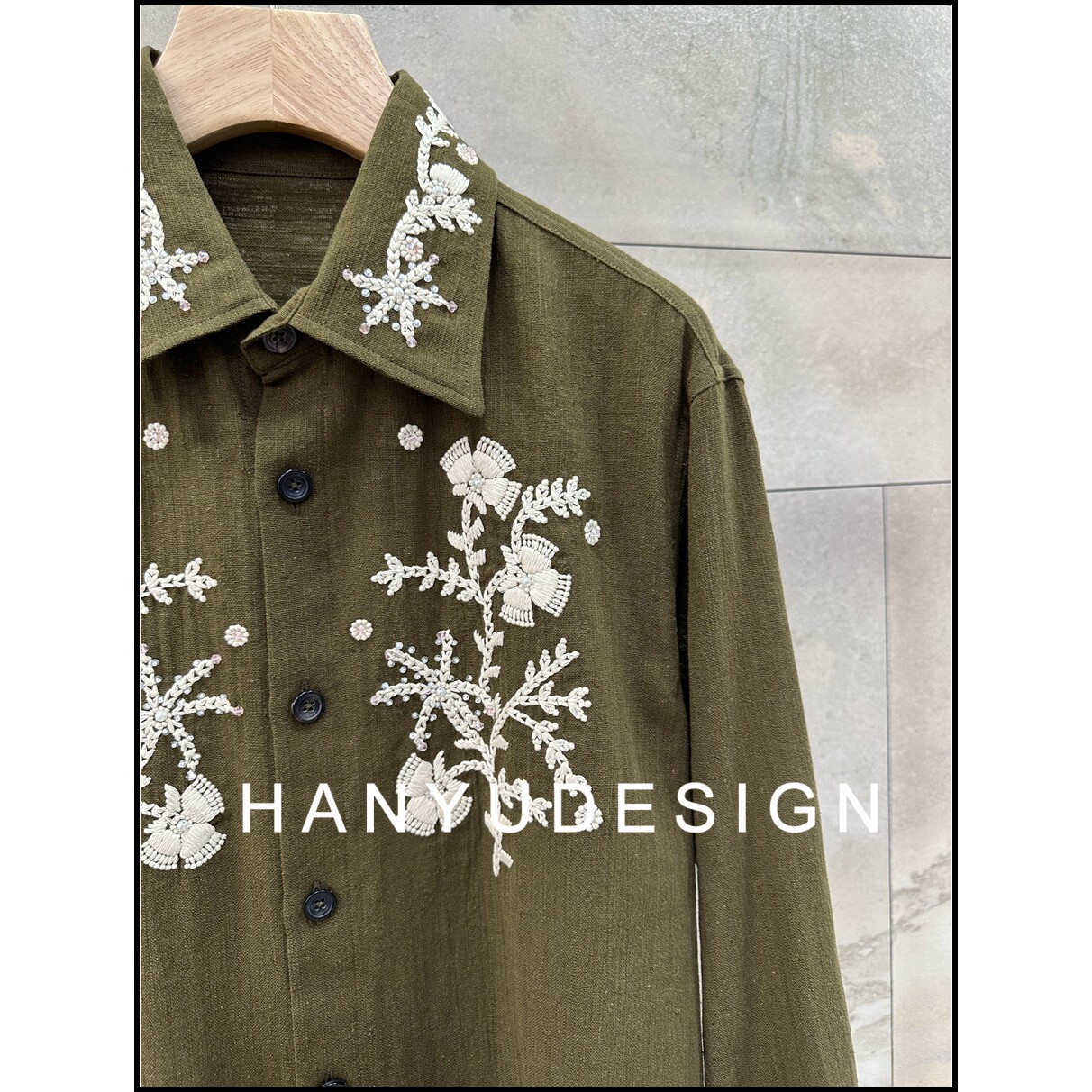 绿色复古风手工刺绣翻领衬衫 26早春新款 女 韩钰DESIGN