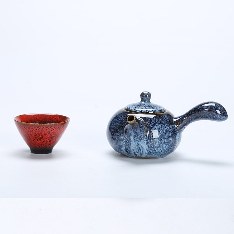 窑变侧把壶陶瓷拉丝五色功夫茶具车载旅行包茶具套装 伴手礼品