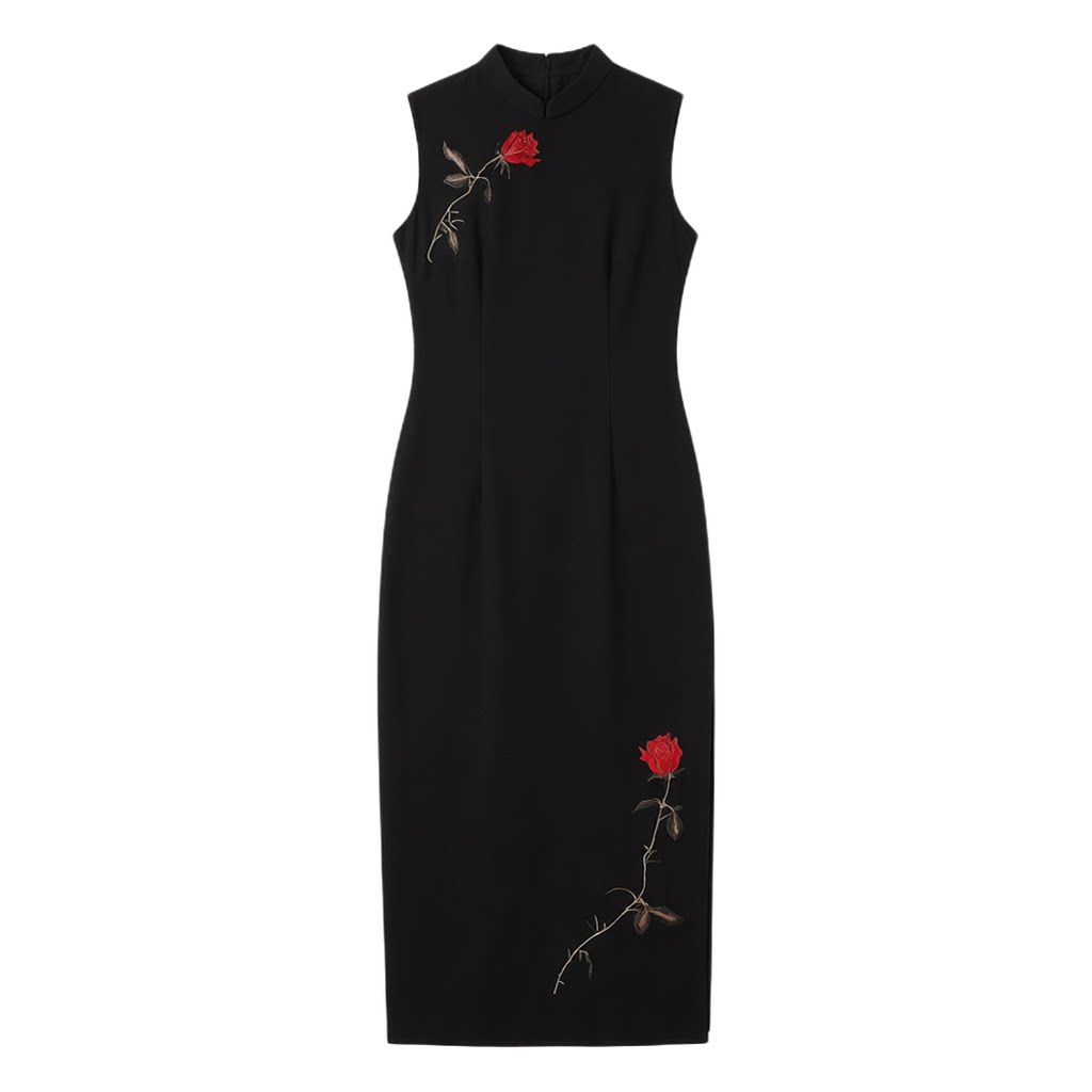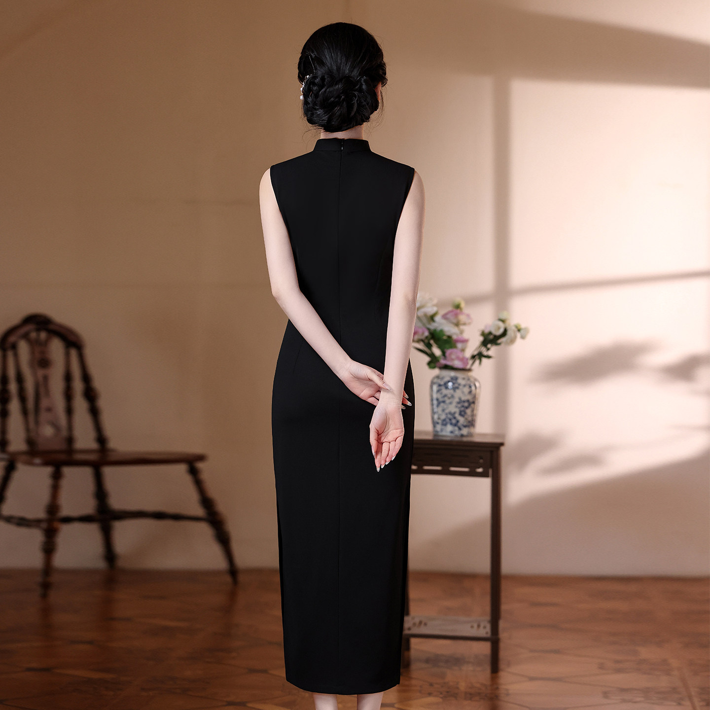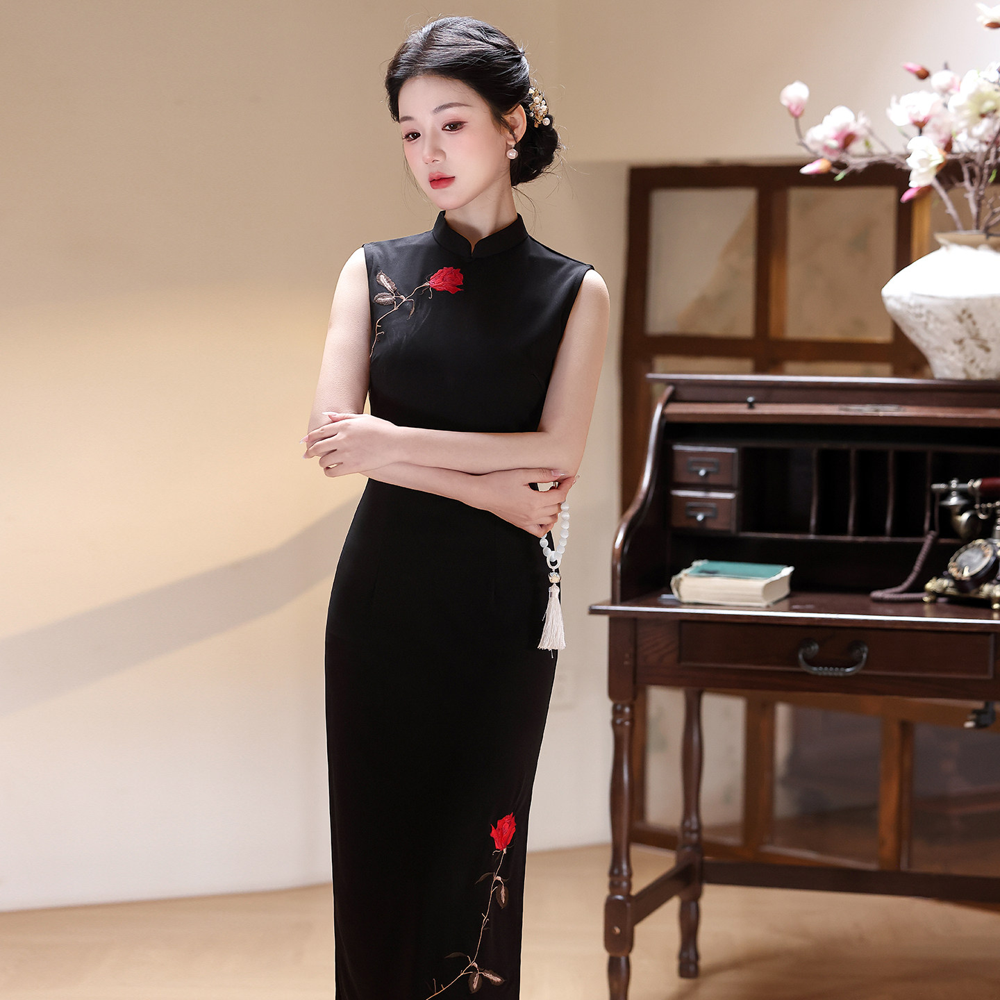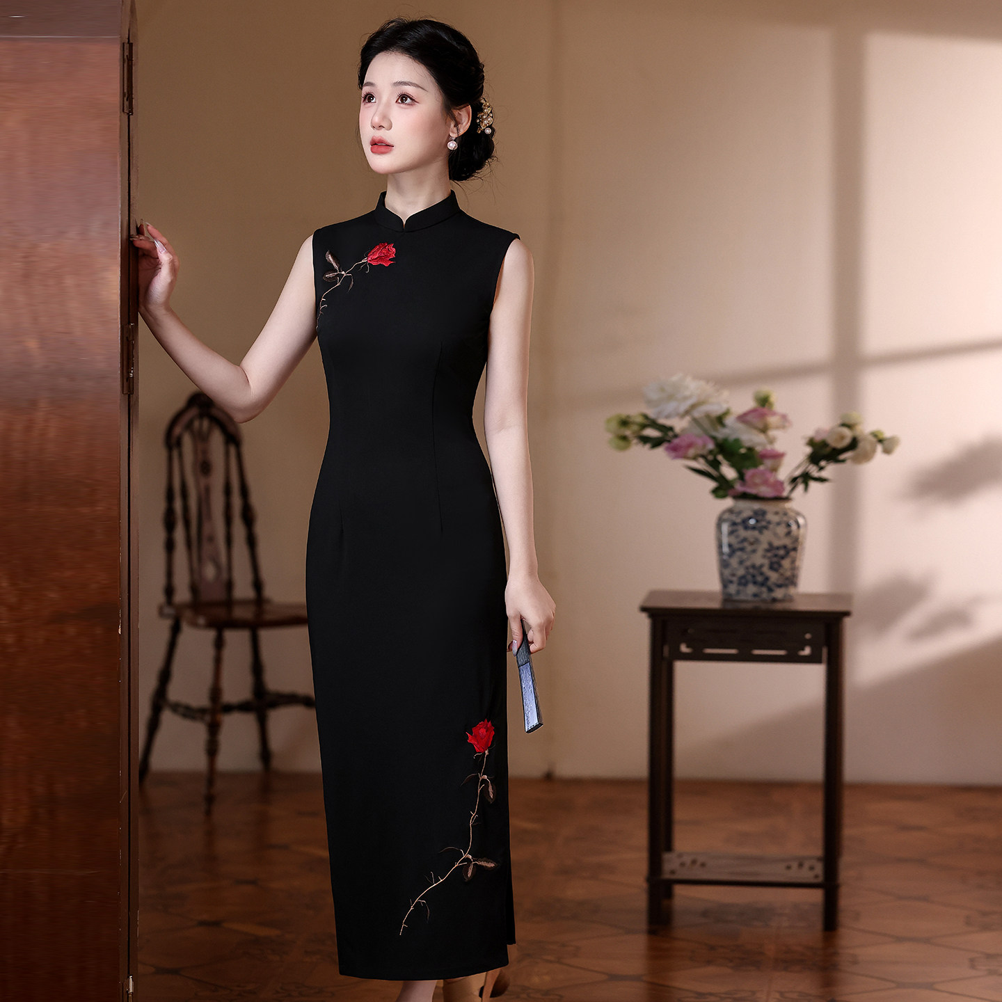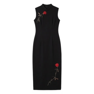 气质高端收腰显瘦上班可以穿 年轻款 新中式 黑色刺绣旗袍2026年新款