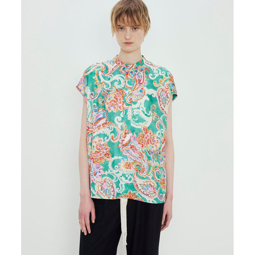 日本直邮TOMORROWLAND 印花上衣 真丝方领短袖 简约 女装 1h可退