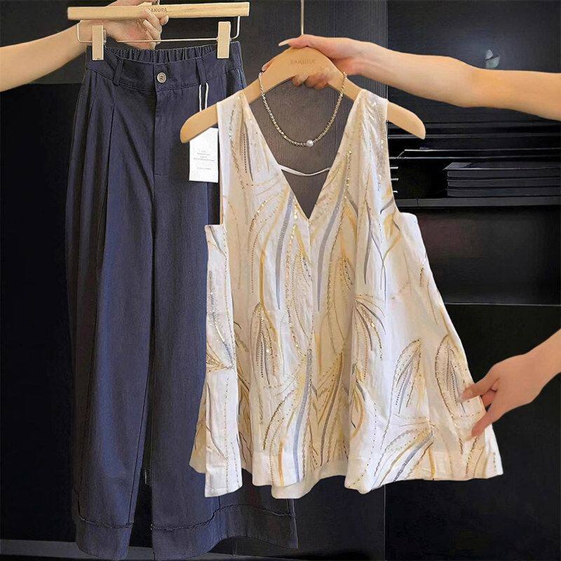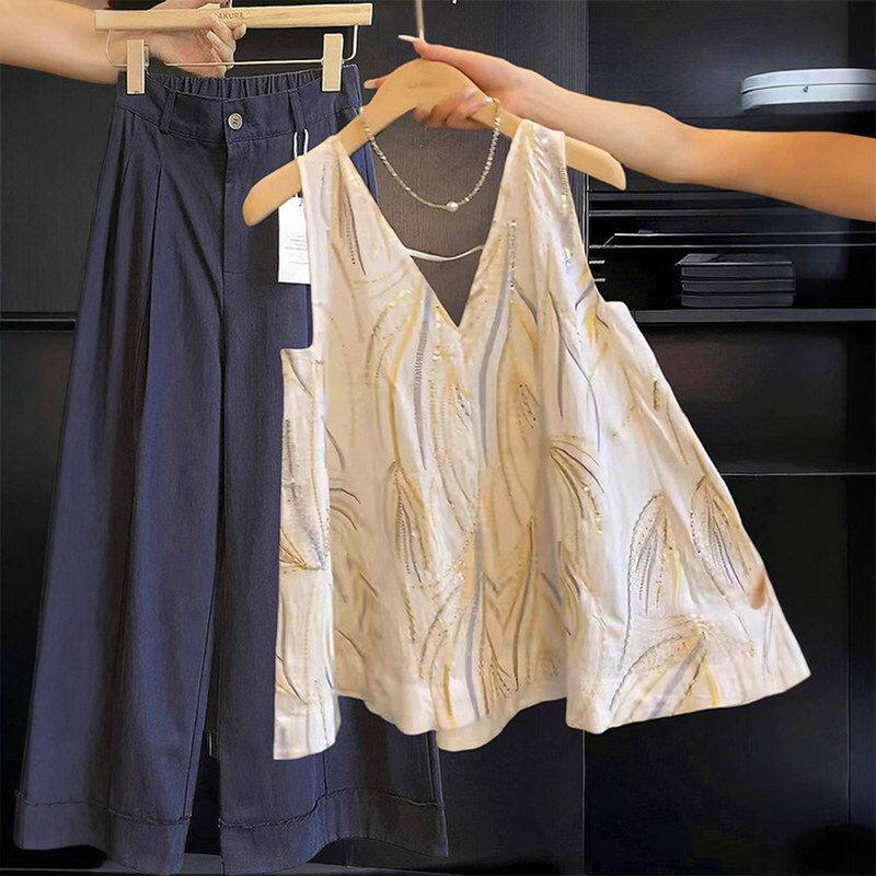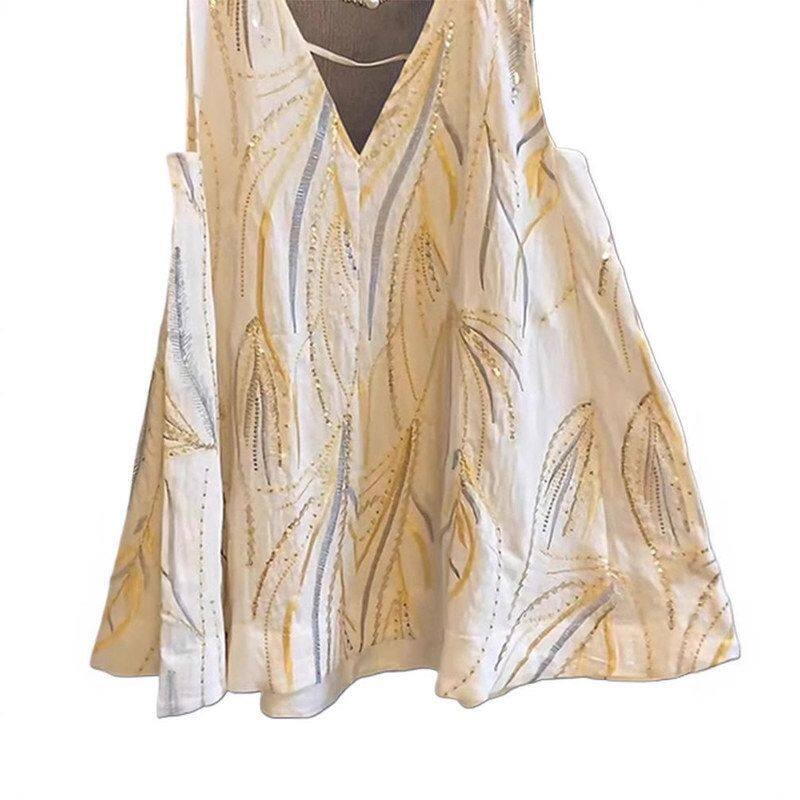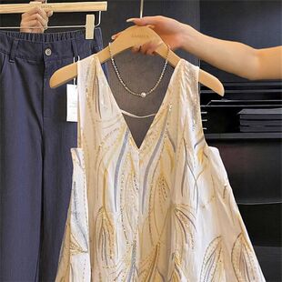背心女宽松设计感小众性感露背衬衫 V领刺绣提花无袖 上衣 夏季 法式