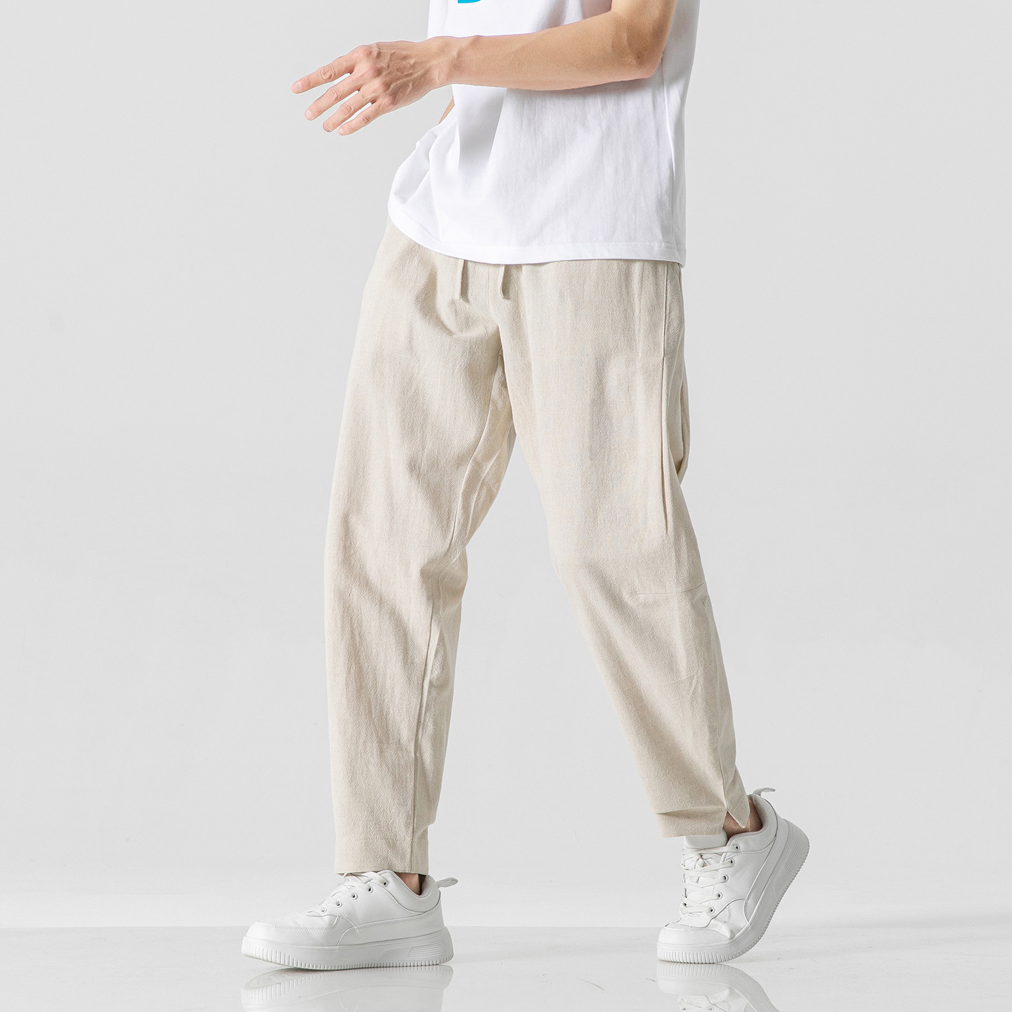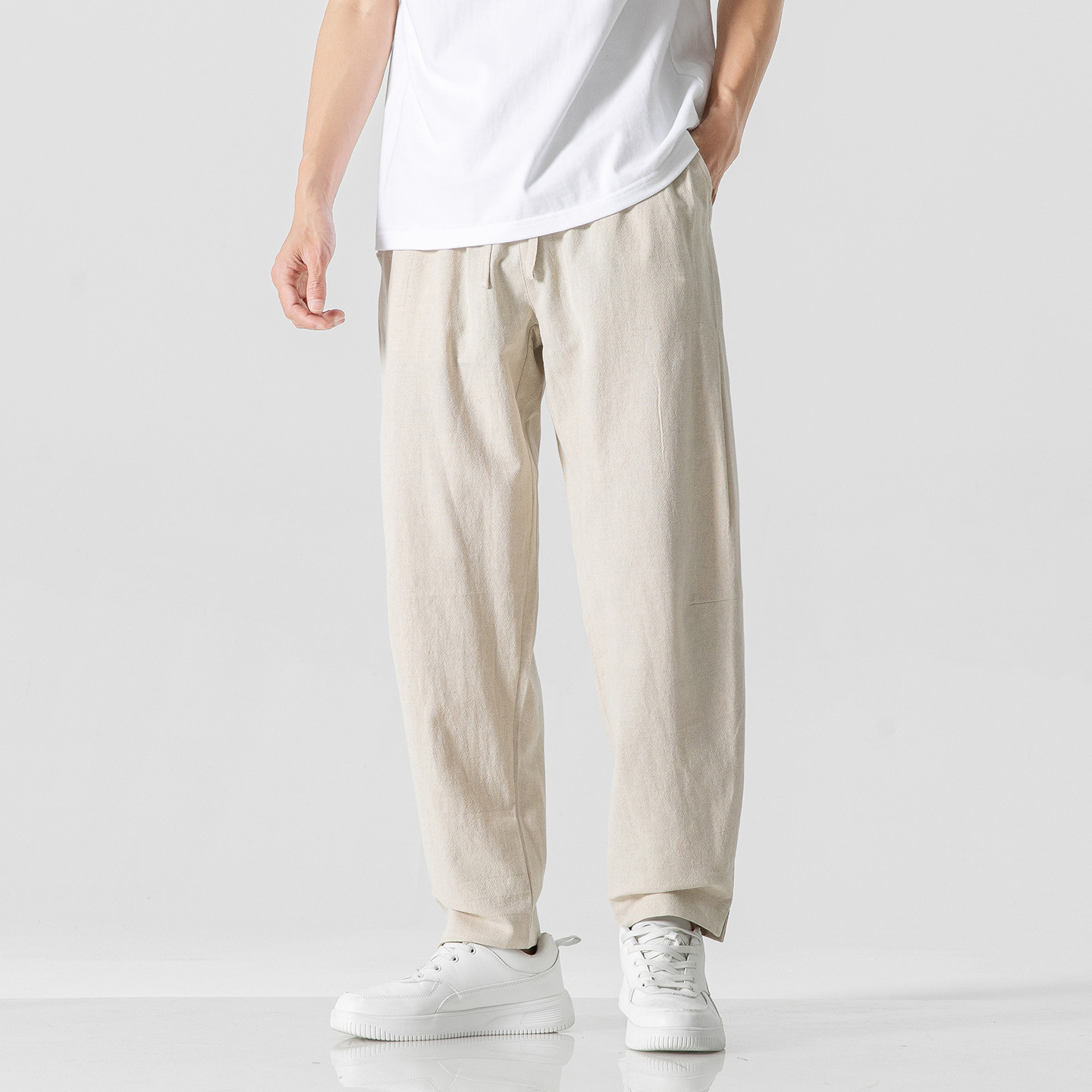 休闲宽松长裤 子男款 潮流百搭九分裤 男2026新款 男式 透气男装 棉麻裤