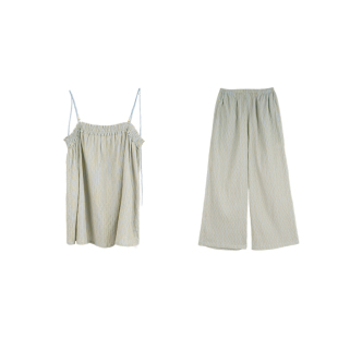 套装 纯棉条纹性感吊带九分裤 夏季 朵朵可可家居服睡衣女2026新款