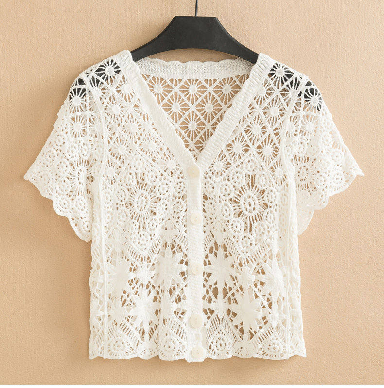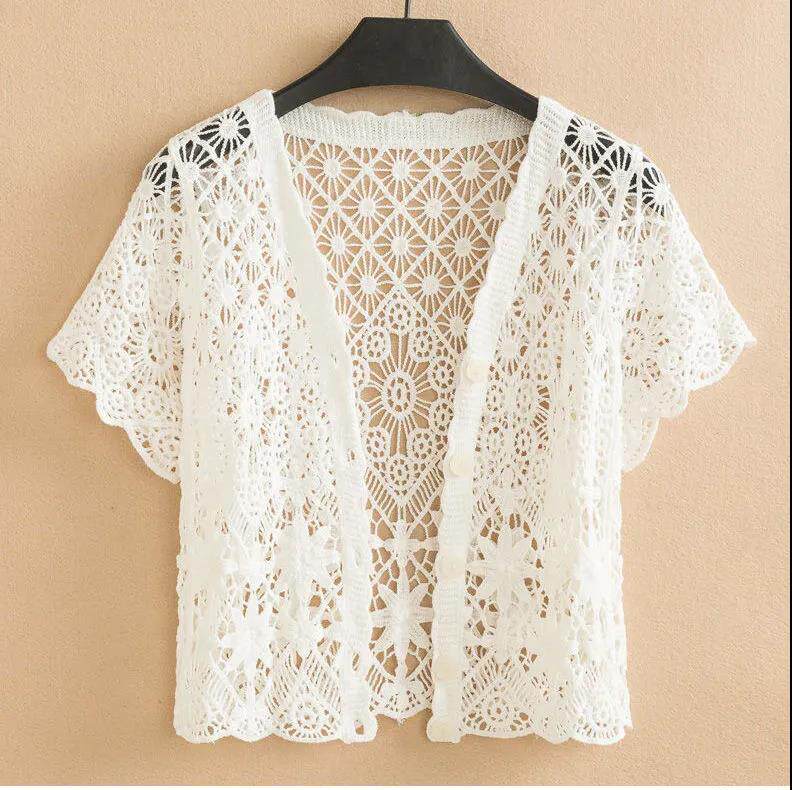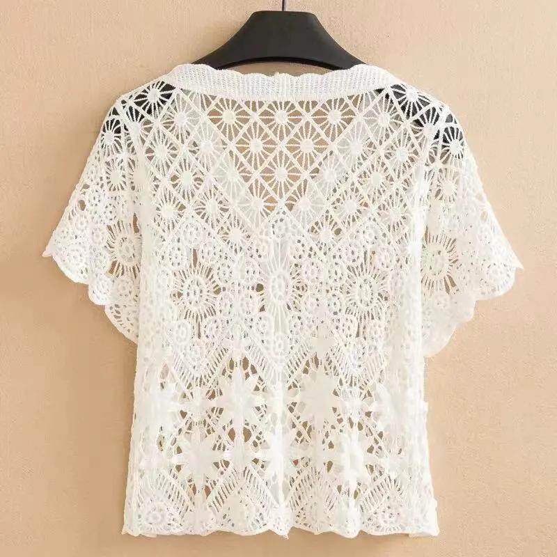 上衣外搭镂空针织开衫 夏季 短款 防晒衣女小披肩外套配裙子罩衫 短袖
