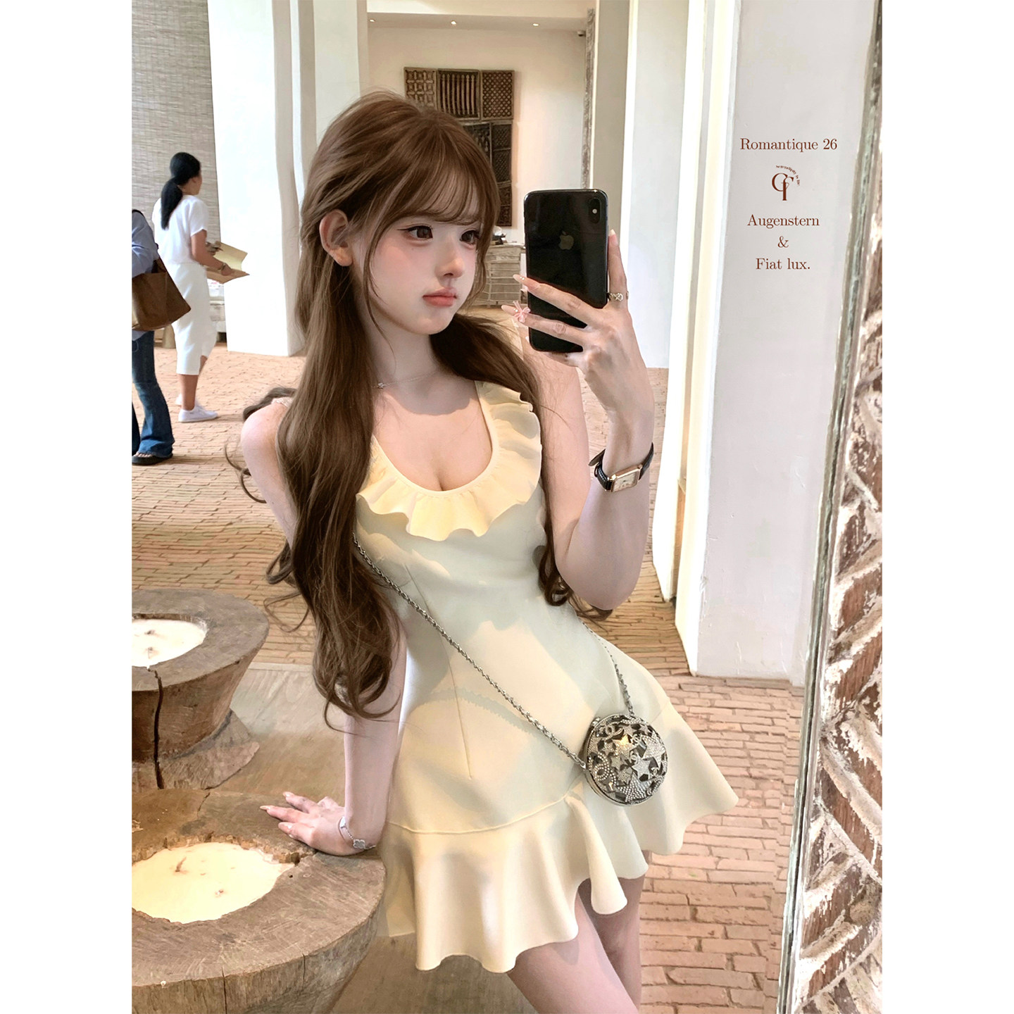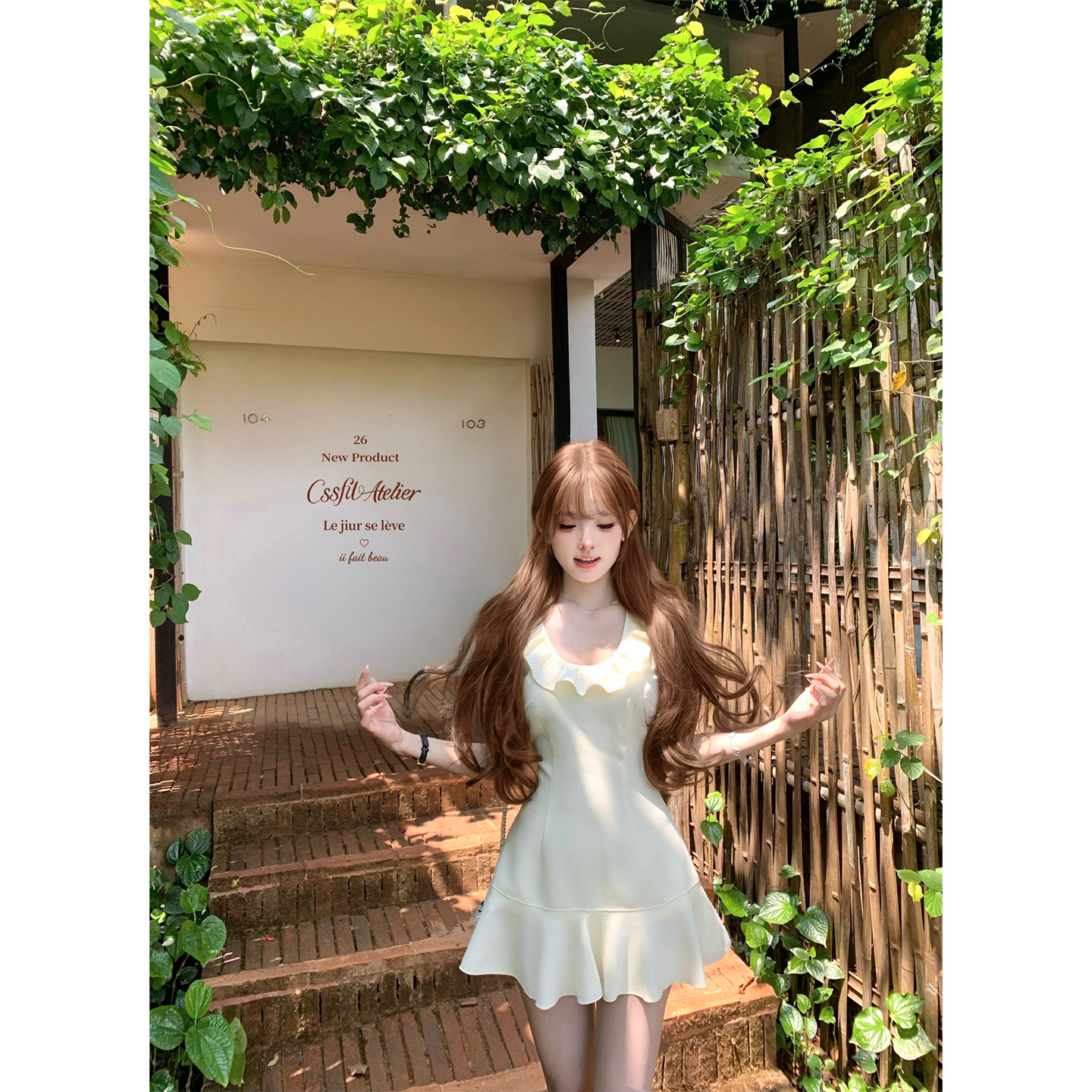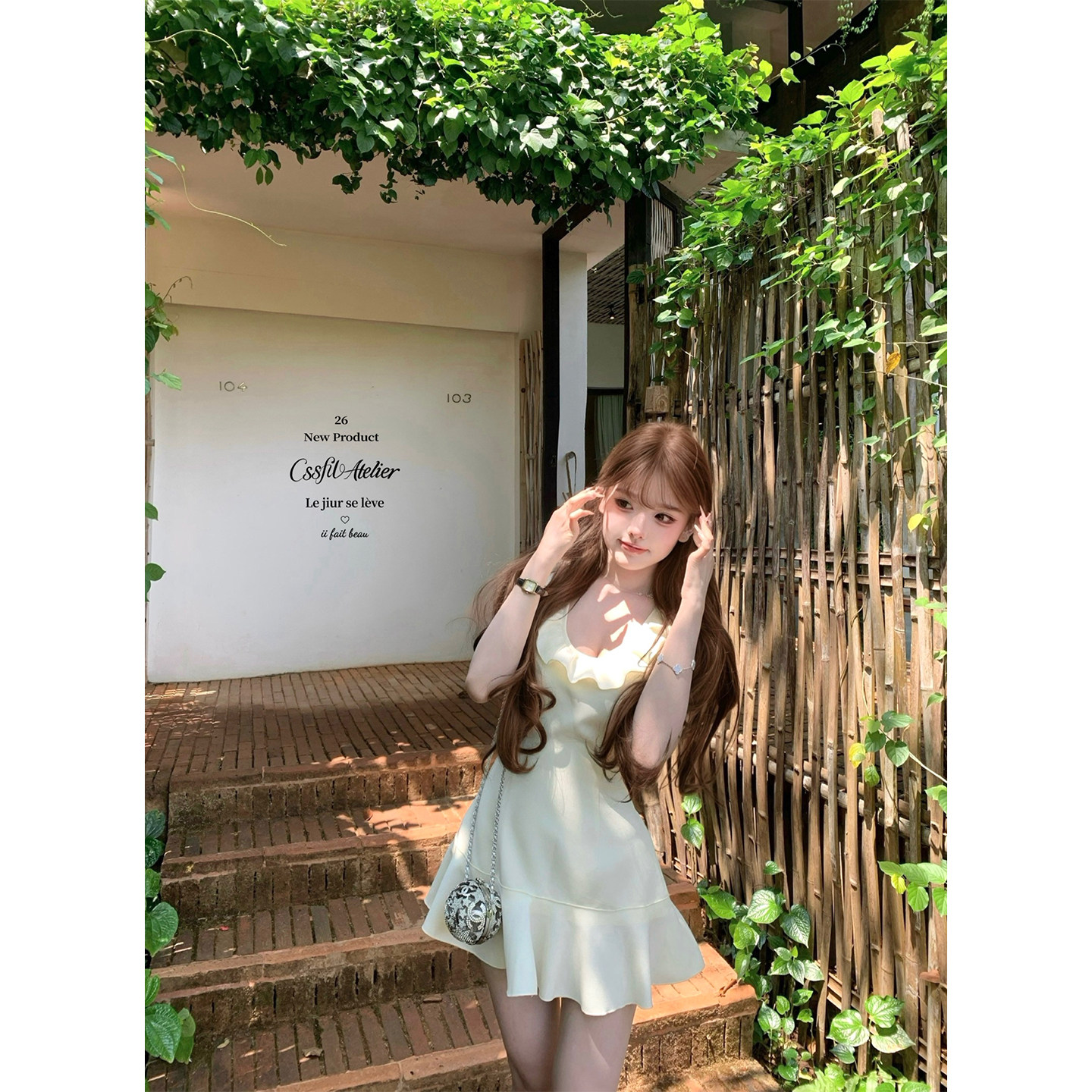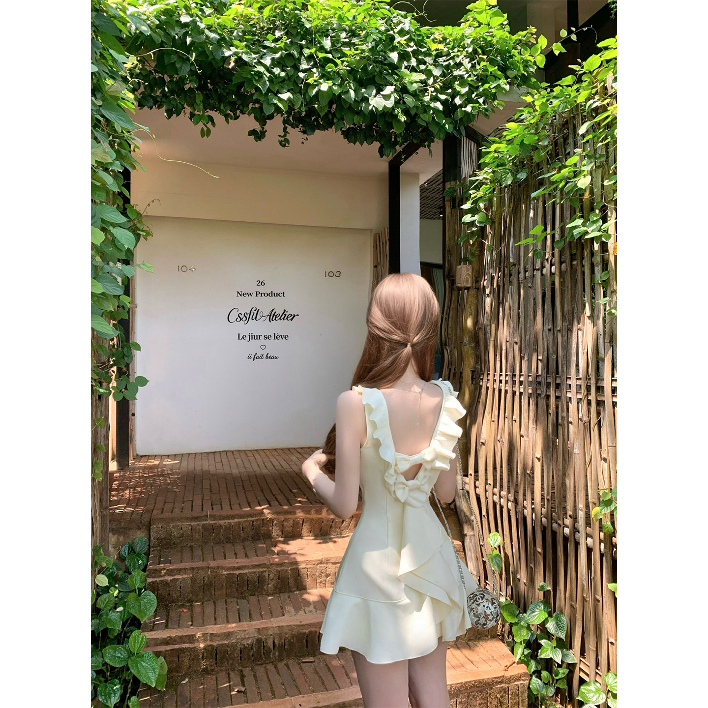 小香vintage奶白蝴蝶结无袖 盛夏柔光 不规则连衣裙 迟伞伞26