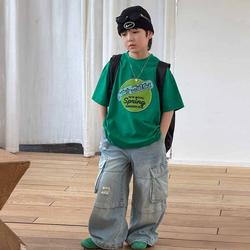 11时 包邮 上衣 潮童时髦破洞T恤字母短袖 3.24采购节200