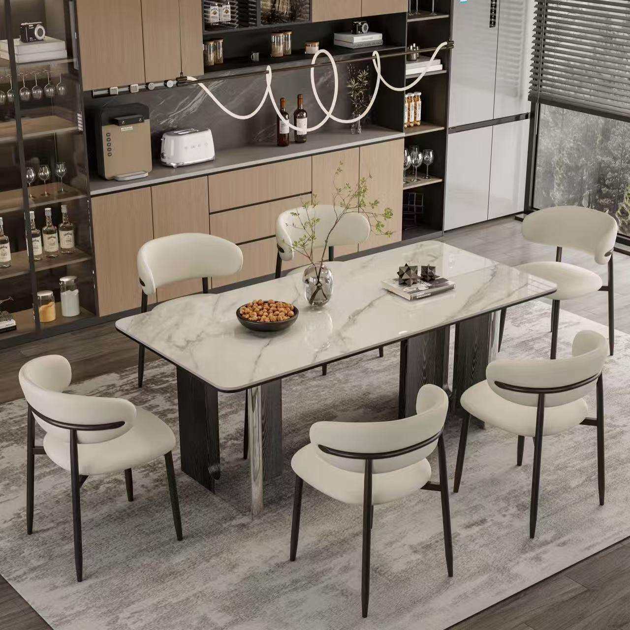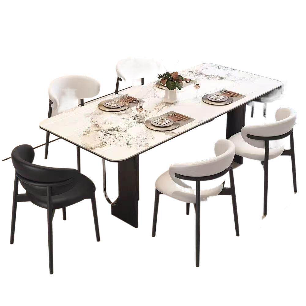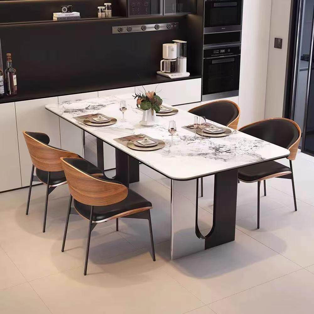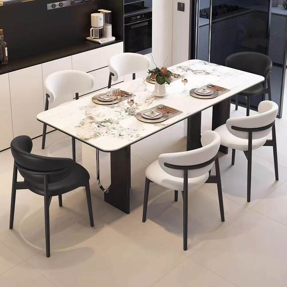 意式 亮光餐桌岩板家用餐桌椅组合轻奢小户型长方形现代简约饭桌