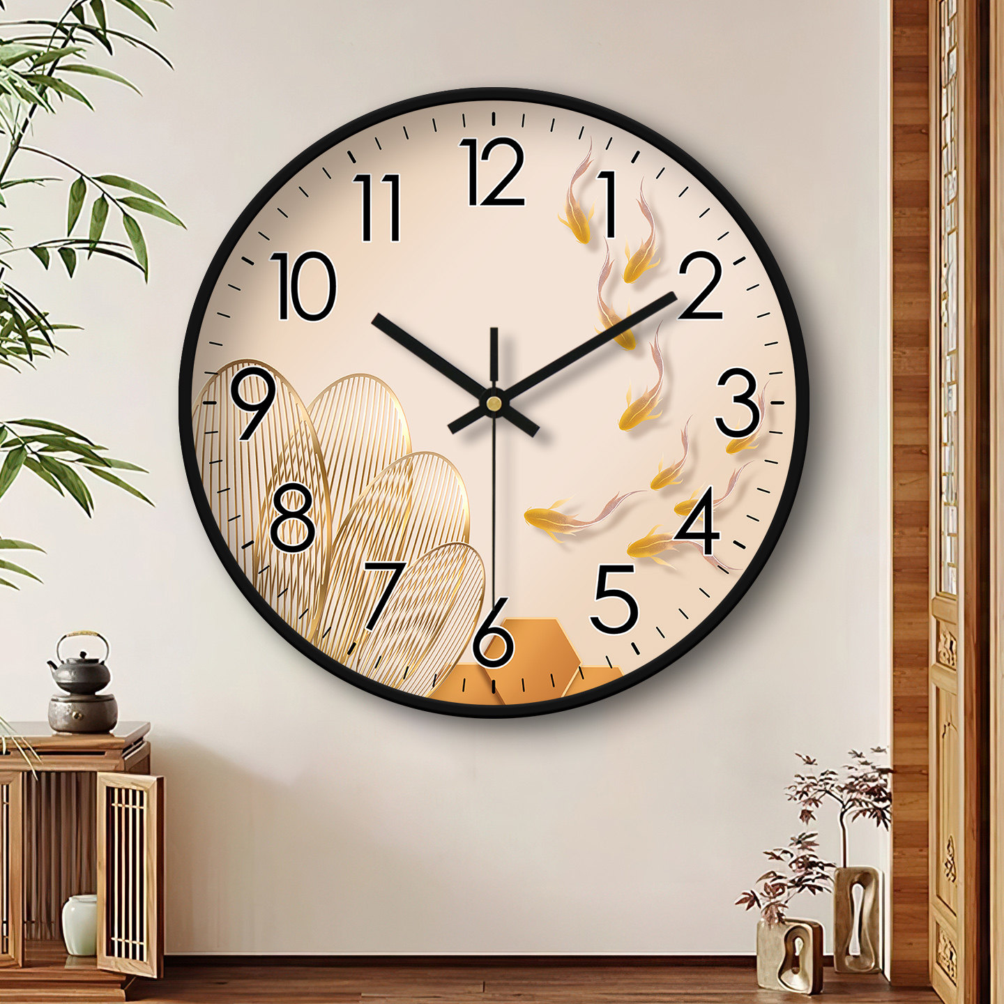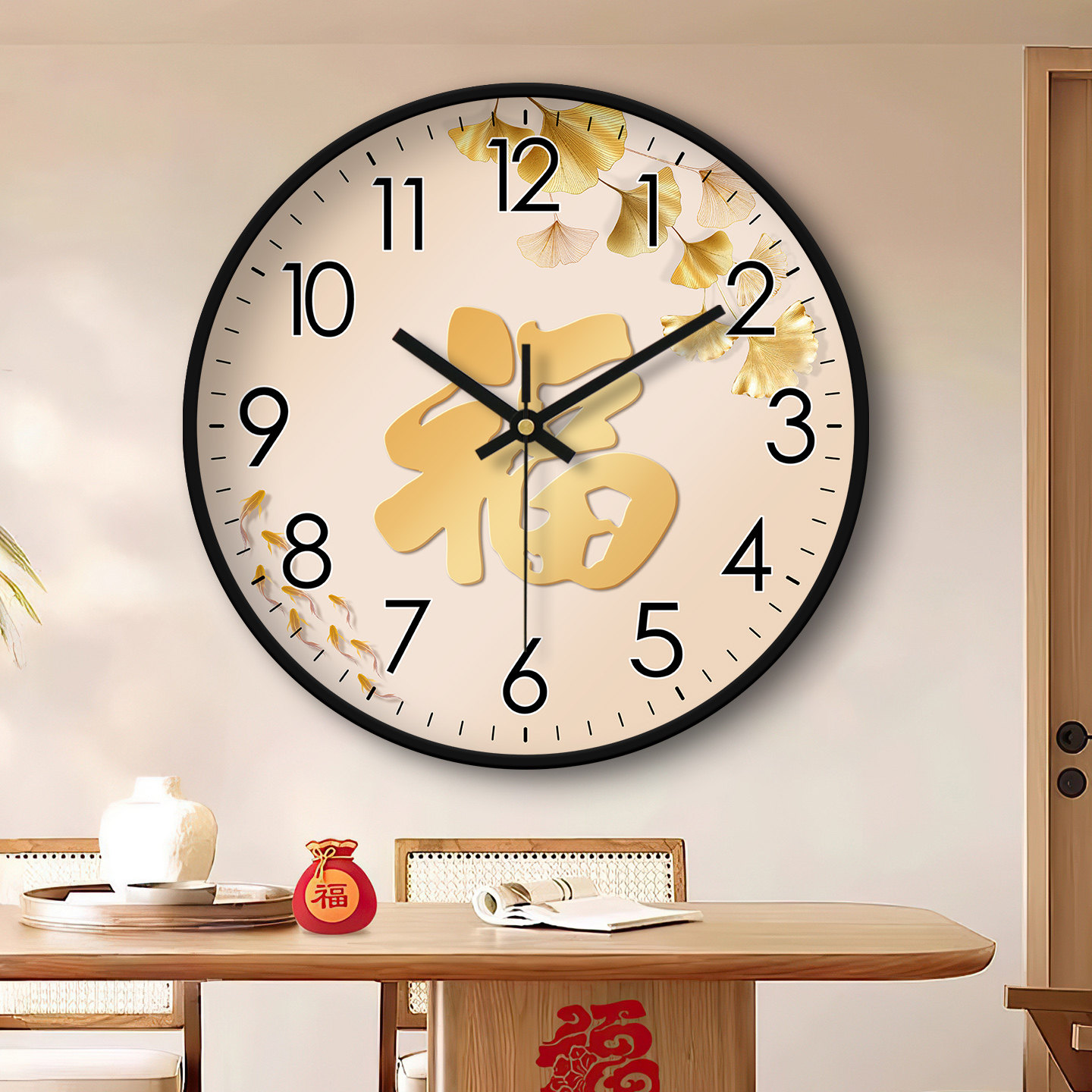 精梭客厅金鹿客厅简约静音挂钟创意免打孔装 大气挂墙钟 饰时钟时尚