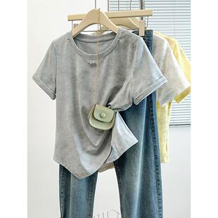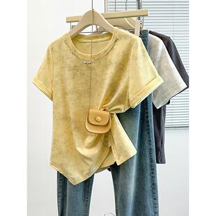 女设计感链条扎染不规则短袖 胖mm大码 T恤 新款 2026夏装