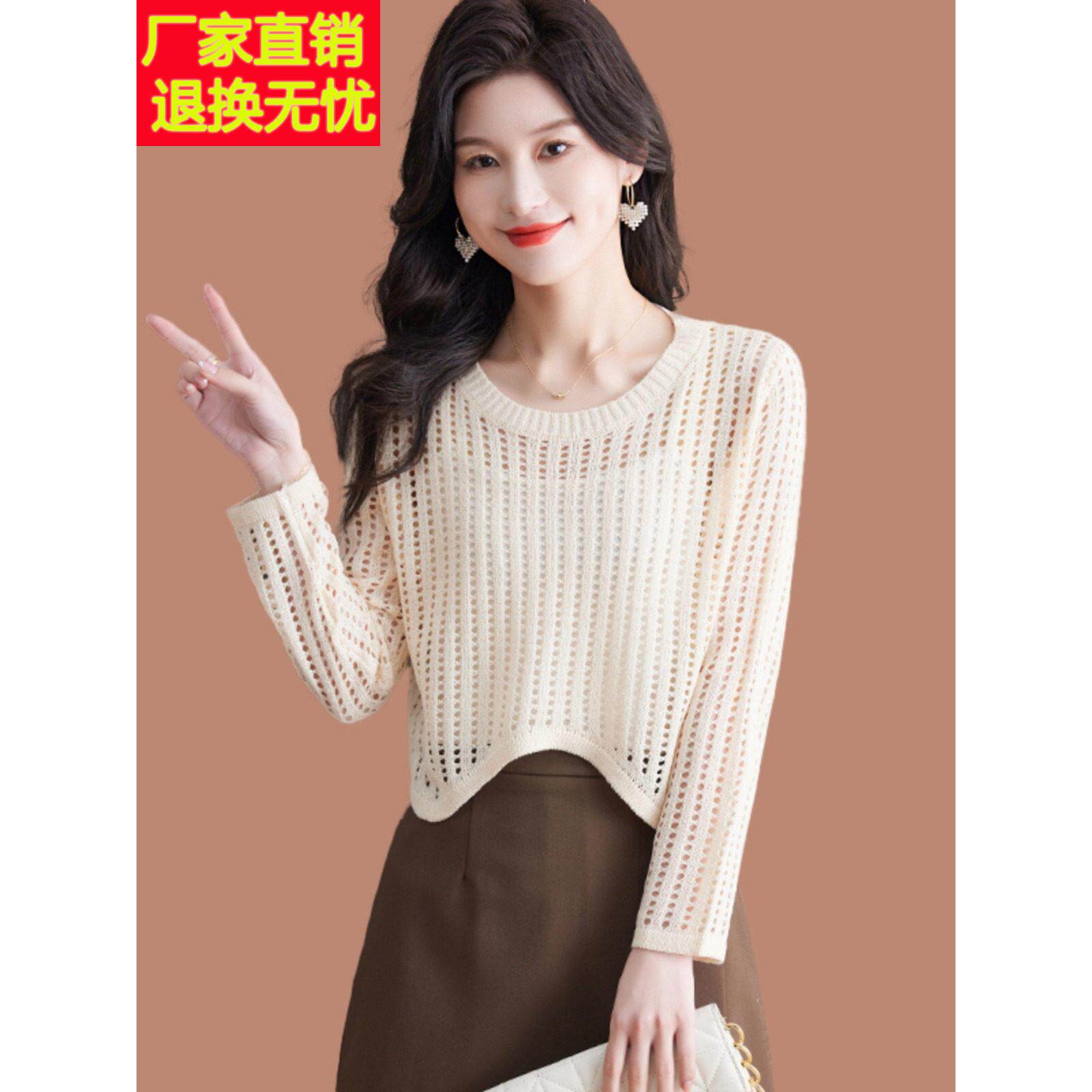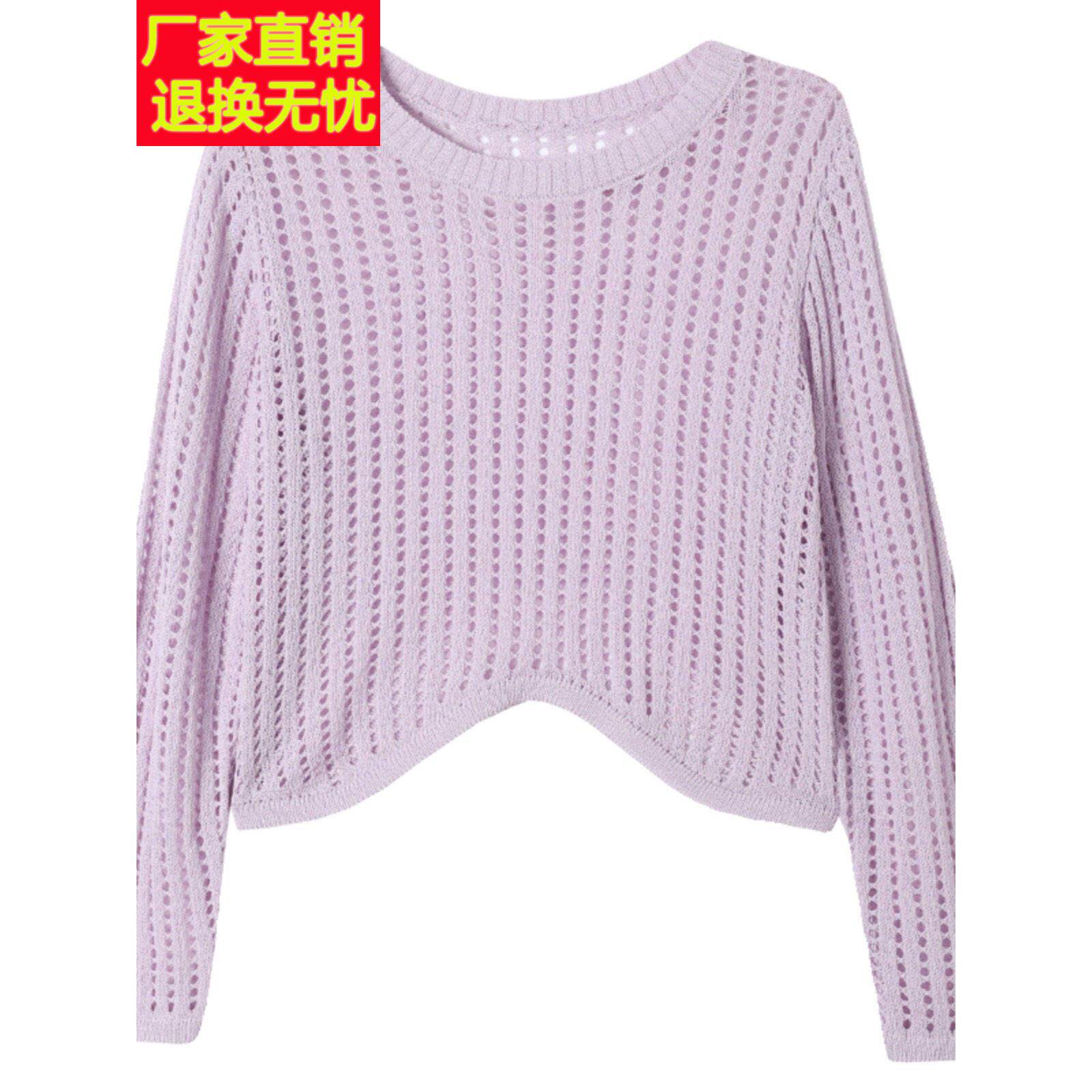 2025新剪裁紫色针织衫 短裙夏季 t恤上衣 式 高腰薄冰丝绸女士短款