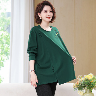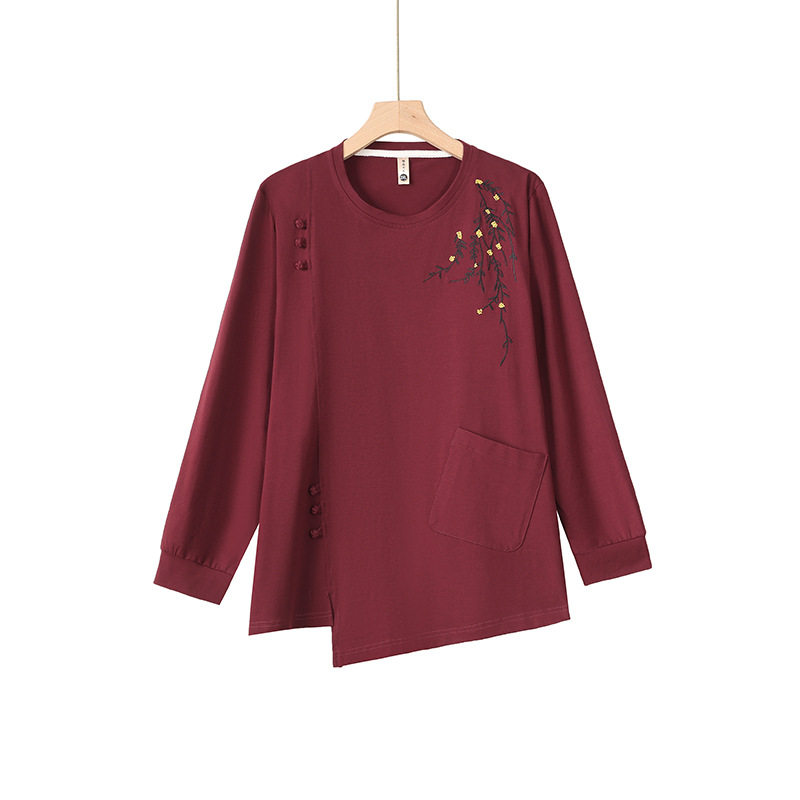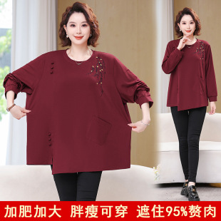 长袖 春秋新款 刺绣上衣妈妈装 打底衫 奶奶 宽松加肥加大码 中老年女装