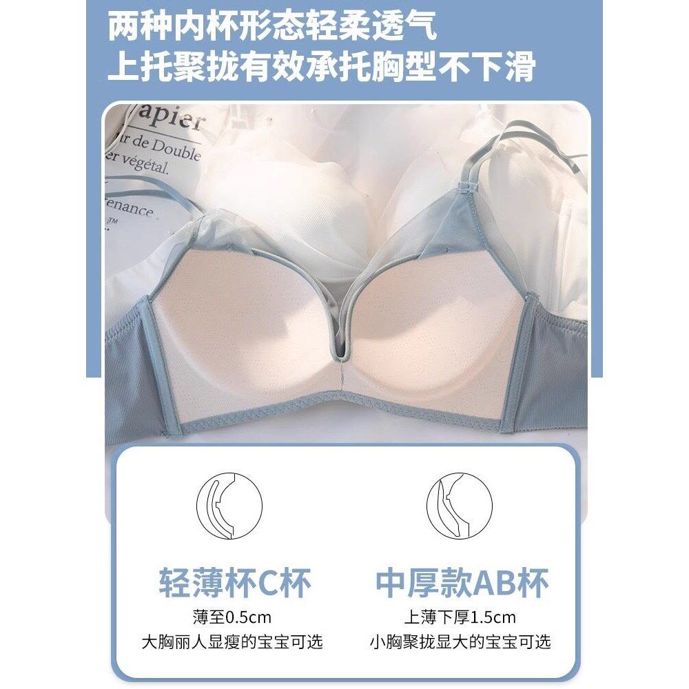 GULIBERRY内衣女新款 性感显大网纱无痕文胸三角杯 美背聚拢法式